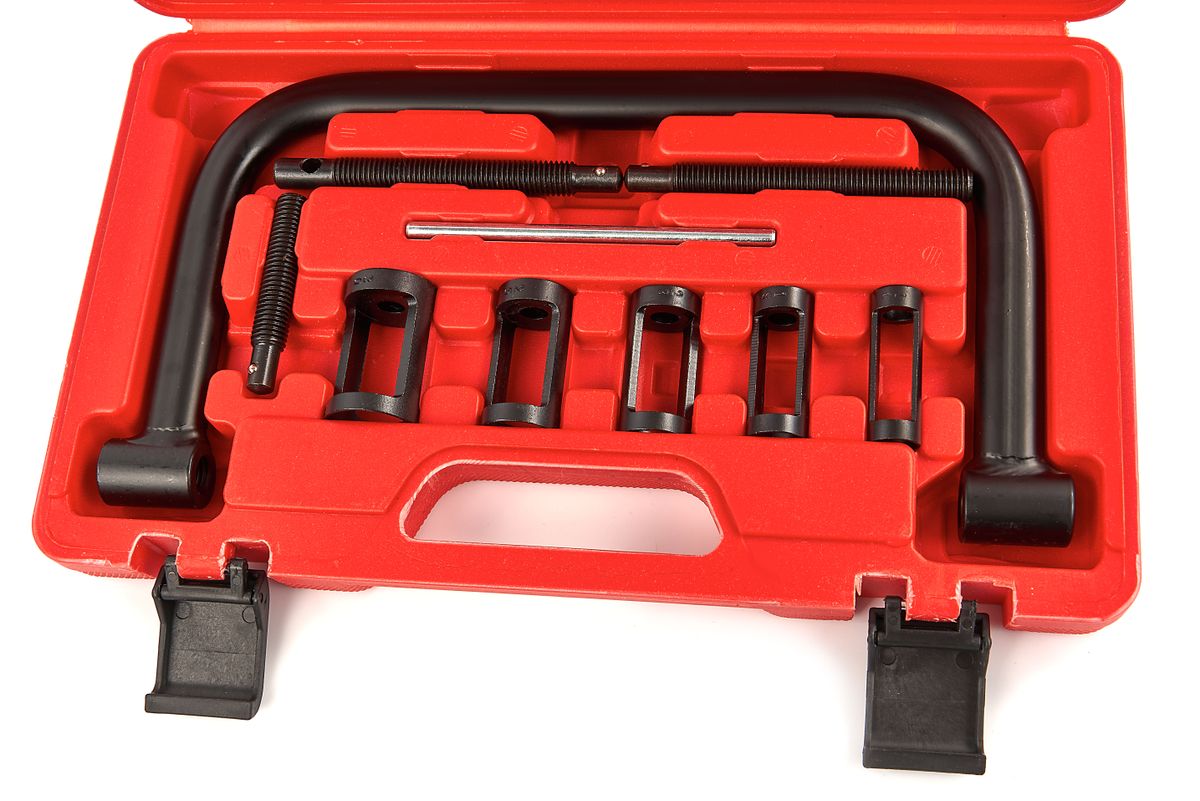 Dit professionele, hoogwaardige klepveerspanner gereedschapset is ideaal voor gebruik op auto’s, busjes, kleine watermotoren en de meeste motorfietsmotoren. De adapters met verschillende afmetingen maken deze set tot een van de meest veelzijdige op de markt, aangezien deze de veren op de meeste cilinderkoppen kunnen verwijderen en spannen. Met deze set kan je de klepveren op de juiste manier monteren, omdat de veren hierdoor gemakkelijker kunnen worden gespannen.