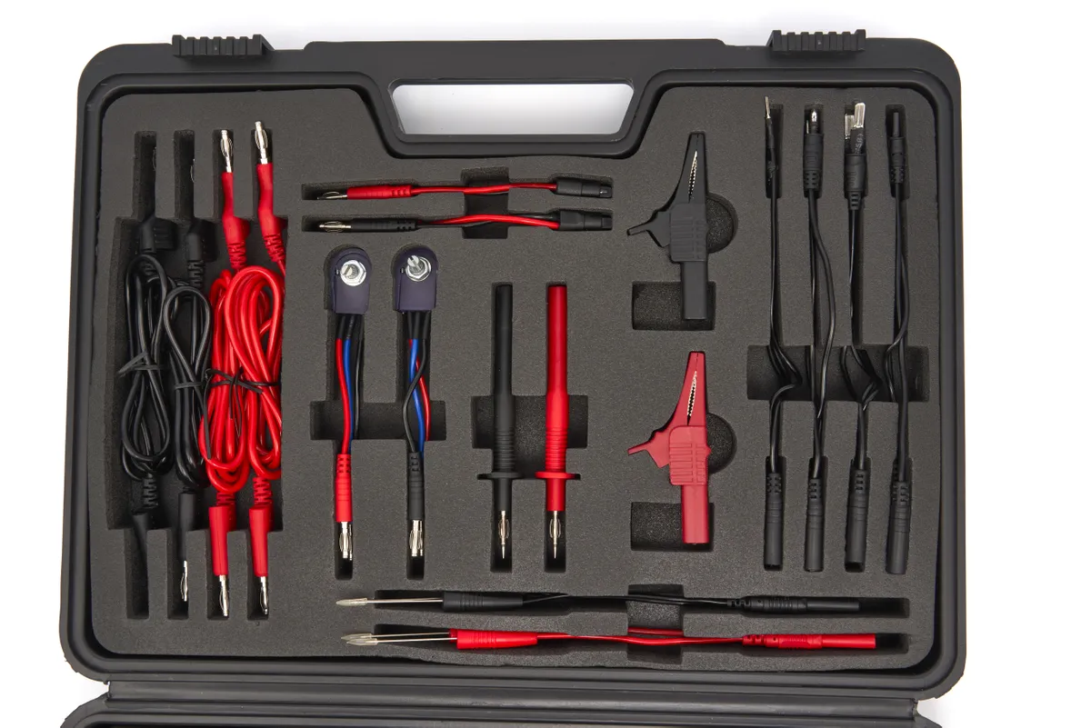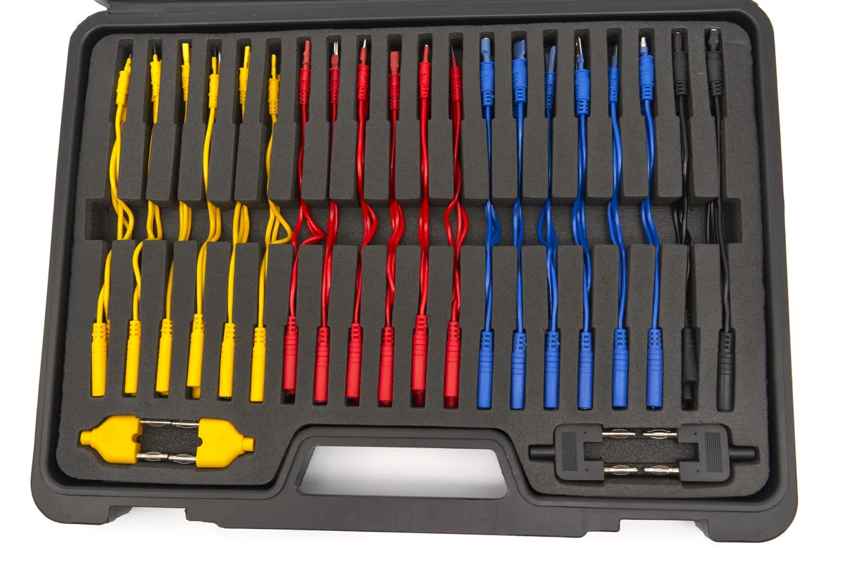 De HBM Automotive Test Lead en Connectoren Kit is een veelzijdige 92-delige set voor nauwkeurige diagnose van elektrische systemen in voertuigen. HBM levert met deze kit alle essentiële componenten voor het meten van spanning, stroom en weerstand, in combinatie met een multimeter of oscilloscoop (beide niet inbegrepen). De set bevat onder andere 5 kΩ-potentiometers, LED-stroboscopen, sondes, krokodillenklemmen, SRS-connectoren en een ruime selectie terminals. Dankzij de naaldvormige sondes en handige verloopconnectoren bereik je eenvoudig moeilijk toegankelijke plaatsen. Alles wordt overzichtelijk opgeborgen in een stevige koffer. Ideaal voor werkplaats en gevorderde hobbyist.