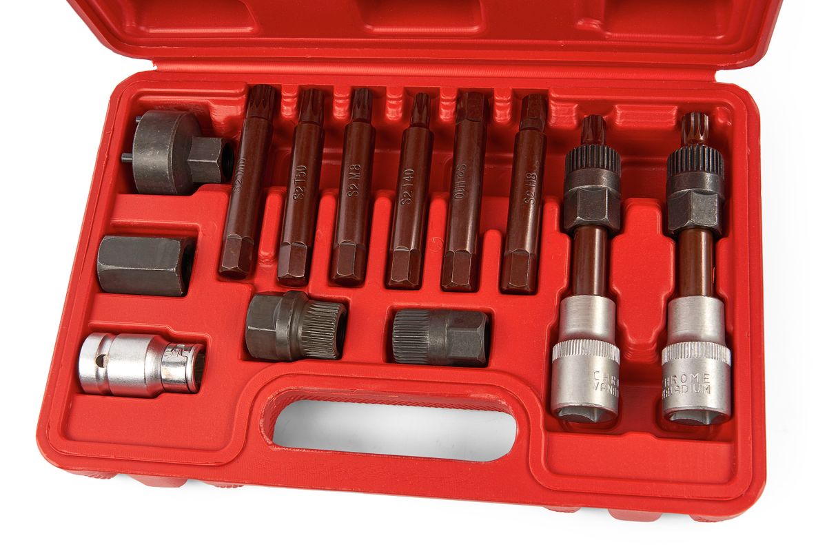 Hoewel het dynamovrijloopwiel een relatief klein onderdeel is, kan het voor grote (de)montageproblemen zorgen. Het demonteren zou met een beetje geweld nog wel mogelijk zijn, maar voor een perfecte montage heb je absoluut speciaal gereedschap nodig. Zoals het multifunctionele gereedschap set van HBM. Deze 13 Delige gereedschapsset voor het (de)monteren van de tandriemschijven van dynamo’s verdient zich snel terug. De set is onder meer geschikt voor Bosch, Renault, VAG, Mercedes, BMW en Ford.