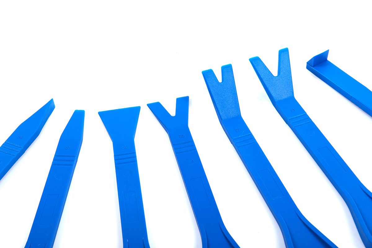 Voor het demonteren van sierlijsten, deurpanelen, sierstrips, rubberverbindingen, instrumentenpanelen, schakelaars, achteruitkijkspiegelglazen( spiegelglazen) Gemaakt van een hoogwaardige kunststof. Met glasvezel versterkt. Ook zeer bruikbaar voor moeilijk bereikbare plaatsen. Verpakt in kunststof opberg etui.