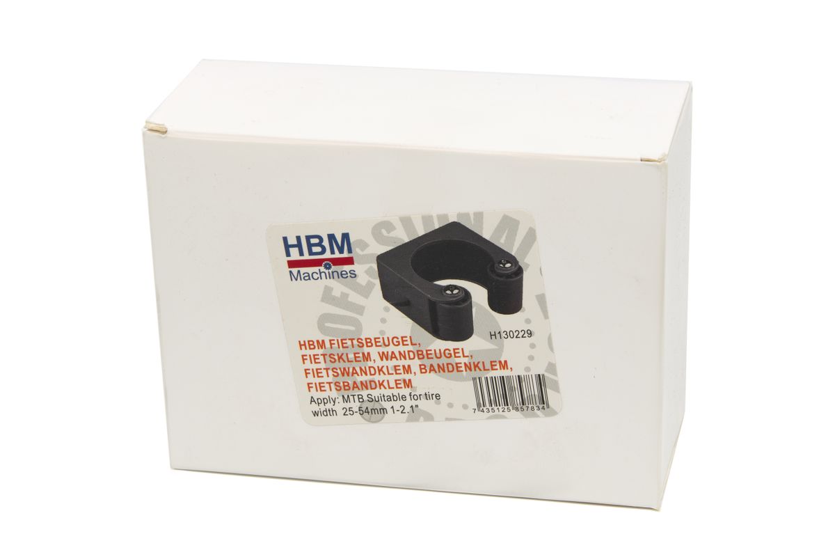 Met de handige HBM Fietsbeugel, Fietsklem, Wandbeugel, Fietswandklem, Bandenklem, Fietsbandklem is het een kleine moeite om jouw stads, race, ATB fiets aan de wand te bevestigen. Door jouw fietsband in de beugel te klikken blijft de fiets tegen de wand “staan”. De klem is eenvoudig te bevestigen door middel van de bijgeleverde schroeven en pluggen. Jouw fiets zal nooit meer in de weg staan!Geschikt voor banden van 25-64 mm