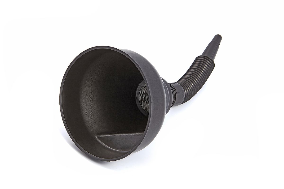 Plastic trechter met gaasfilter. Dik, duurzaam plastic.