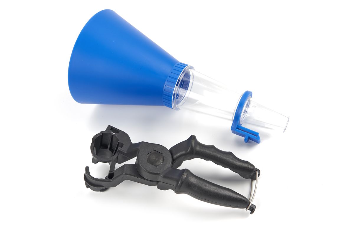 Gebruik van deze trechter voorkomt verspilling en morsen van dure olie! Universele olietrechterset 2 delig. Innovatieve klem houdt de trechter in positie, waardoor de gebruiker met beide handen kan gieten. Helpt morsen te voor komen. Doorzichtige onderste kamer laat oliestroom zien. Trechterdiepte 250 mm x diameter 125 mm.