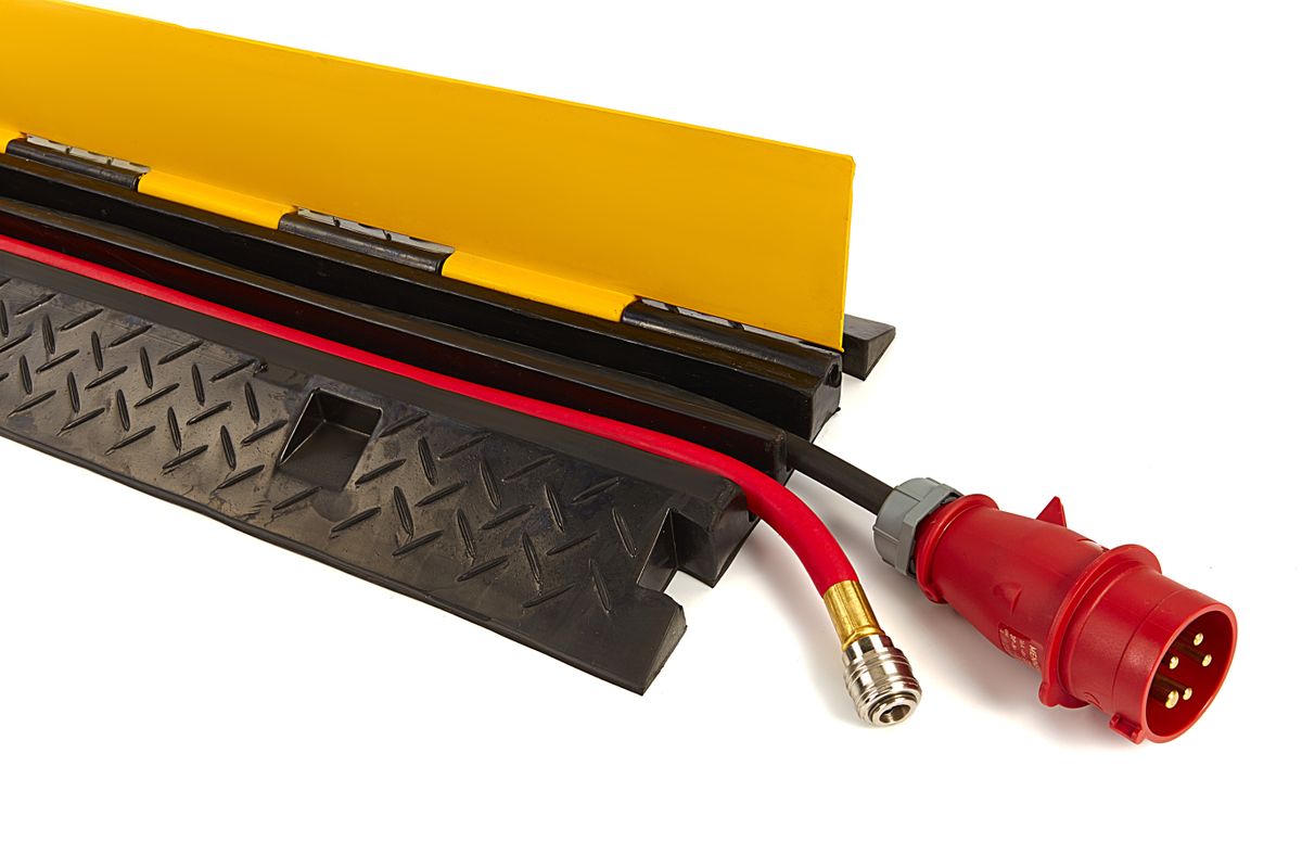 Wanneer je werkt met elektrische apparatuur en/of slangen, ontkom je er niet aan dat de kabels en leidingen over de weg of het terrein komen liggen. Om ervoor te zorgen dat je hier niet over valt, en de kabels niet opvallen of beschadigen, kun je gebruik maken van deze handige kabelbrug. Deze 100 cm kabelbrug met twee kanalen biedt plaats voor maar liefst twee leidingen, snoeren of andere soorten kabels en kan eenvoudig worden afgesloten door de scharnierende klep. Over de HBM 100 cm Kabelbrug / Kabelgoot Met Klep en 2 kanalen Deze stevige kabelbrug is gemaakt van hoogwaardige materialen en zorgt hiermee voor een optimale bescherming van je kabels, snoeren, slangen en elektrisch apparatuur. Dankzij zijn lage gewicht kun je de brug eenvoudig verplaatsen en meenemen naar elke locatie. De kabelbrug is zeer handig in gebruik en kan eenvoudig aan verschillende elementen gekoppeld worden. Hierdoor kun je de brug zo lang maken als nodig is.