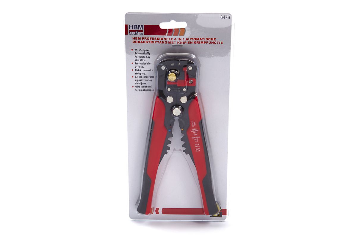 Met de HBM Professionele 4 in 1 Automatische Draadstriptang met Knip en Krimpfunctie is het strippen van draden geen moeite. De tang is automatisch instelbaar en daardoor ideaal gereedschap als je nauwkeurig aan de slag moet. De striptang kan worden gebruikt voor het strippen van koper en aluminium draden van 0.5 – 6.0 mm. (enkelvoudige draad). Daarnaast zit er een knip en een krimp functie op deze tang waarmee gemakkelijk gewerkt kan worden. Deze tang heeft een zwaar uitgevoerde stalen kop, en voelt hiermee erg degelijk aan.