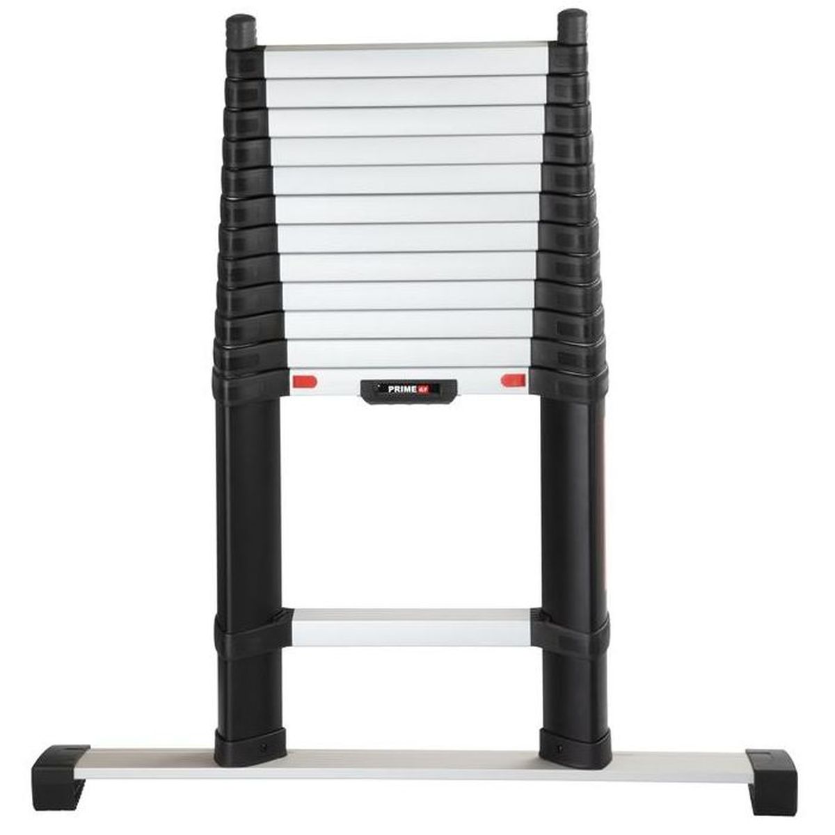 Maak kennis met de Telesteps Prime Line 4,1 m telescoopladder met stabilisatiebalk. Wat deze ladder onderscheidt, is de unieke driehoekige buisconstructie, waardoor deze ladder ongekende stabiliteit en kracht biedt. Of je nu op hoogte werkt of een lage hoek nodig hebt, de Prime Line is ontworpen om te presteren in een hellingshoek tot 75°. Met brede, schuine, en gegroefde treden, die altijd horizontaal met de grond zijn, blijf je veilig en stabiel, hoe hoog je ook gaat. Met antislipprofielen op de treden minimaliseert hij het risico op uitglijden. De schuine rubberen voetjes en treden bieden maximale stabiliteit en veiligheid. Dankzij de minimale draaihoek is hij perfect voor kleine ruimtes. Plus, hij past in vrijwel elke auto. De Prime Line heeft alles wat professionals en vakmensen zoeken in een ladder. Hij is gemaakt van hoogwaardig geanodiseerd aluminium met glasvezelversterkte kunststof fittingen, waardoor hij zowel licht als sterk is.