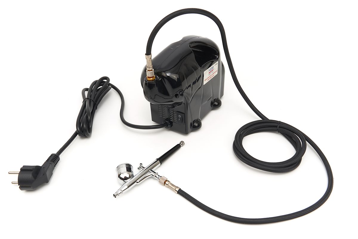 De HBM airbrushset is ontwikkeld om zo eenvoudig en perfect mogelijk verf op te brengen. Met de spuitmond met een sproeiernaald van 0,3 mm kunnen zelfs de fijnste details perfect uitgevoerd worden, ideaal bij bijvoorbeeld muurschilderingen, design schilderen, modelbouw of andere handmatige verfklussen. De set wordt geleverd inclusief 6 kleuren verf dus je kan direct aan de slag.