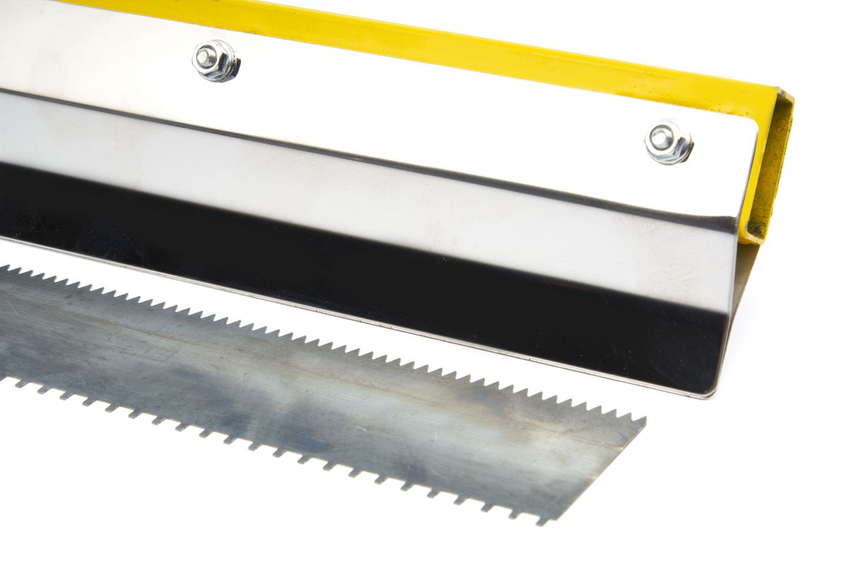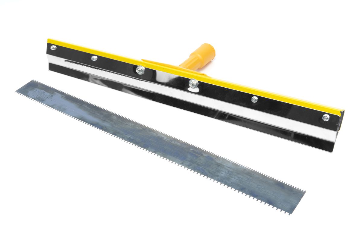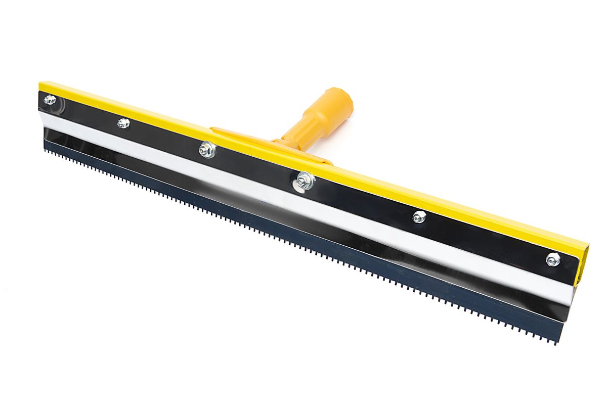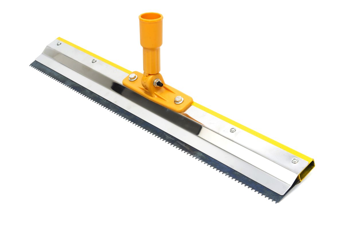 De HBM universele egaliseerset 5-delig is ideaal voor het verwerken van egaline en andere zelfnivellerende producten. Deze set bevat een grote prikroller van 500 mm en een kleine van 250 mm, beide met pinnen van 28 mm voor het efficiënt ontluchten van de vloer. De meegeleverde spike-schoenen (300 x 130 mm) zorgen voor veilig lopen op natte ondergronden. Met de egaliseerhark van 560 mm met 2 soorten harkvormen (3 x 4 mm en 5 x 4 mm) breng je eenvoudig een egale laag aan. Tot slot maakt de lijmschijf van 300 x 110 mm het aanbrengen van lijm moeiteloos.