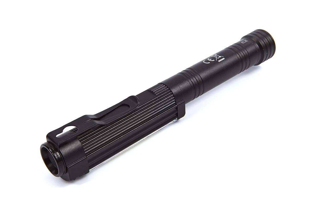 Deze aluminium LED zaklamp van HBM is handig om altijd in de buurt te hebben. Met de handige broekclip neem je hem tevens makkelijk mee naar elke klus. De lamp wordt ingeschakeld met de knop aan de bovenzijde. Aan de onderzijde is de zaklamp voorzien van een sterke magneet. Dit zorgt voor extra stabiliteit, bijvoorbeeld bij plaatsing op de gereedschapswagen. Zo houd je de handen vrij. De sterke aluminium behuizing kan tegen een stootje. Deze HBM zaklamp heeft een lichtopbrengst van maar liefst 400 lumen. Dit komt overeen met de lichtopbrengst van een gloeilamp van 40 watt. Over de HBM Professionele LED aluminium mini zaklamp met magneetvoet Als je aan motoren of andere apparaten sleutelt, is een beetje extra licht altijd welkom om ook op de moeilijk bereikbare plekken te kunnen inspecteren. Met een lichtopbrengst van 400 lumen heb je meer dan genoeg licht tot je beschikking. Ook handig om in de auto bij de hand te hebben. Kom je een keer met pech te staan, dan heb je altijd genoeg licht om te kijken wat het euvel is. Met de rode waarschuwingsled doet de lamp ook dienst als waarschuwingslicht. Eveneens handig bij pech.
