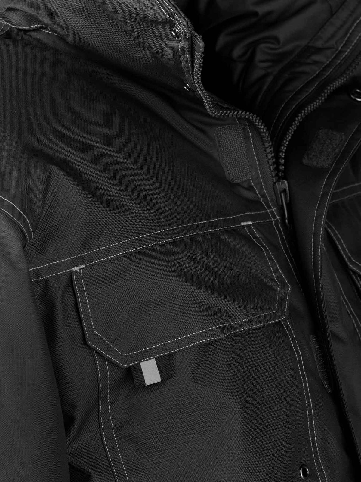Zoek je goede werkkleding om jezelf goed warm te houden tijdens het werken in de bouw, in de tuin of bij het klussen rond het huis. Dan is de Caton Werkjas Zwart een uitkomst. Hiermee werk je het hele jaar door. De werkjas is wind- en waterdicht. De naden zijn getapet. De warme teddy voering is uitneembaar en de jas is voorzien van een nylon binnenvoering. De Caton heeft een vaste capuchon. Hierdoor lekt er geen regen door de kraag. De jas heeft een dubbele sluiting met rits en klittenbandsluiting. De buitenstof is van 300D oxford polyester. Praktisch zijn de opbergzakken: afsluitbare zakken op de heupen en de borst. Op de borst, rug en armen heeft deze jas reflectie details.