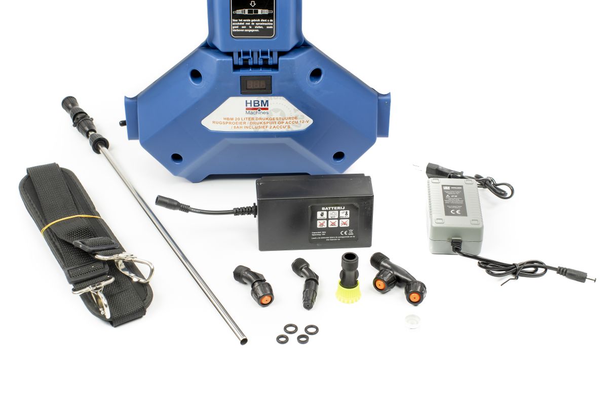 De HBM 20 Liter Drukgestuurde Rugsproeier / Drukspuit op Accu 12-V / 8Ah inclusief 2 Accu’s is een zeer efficiënte sproeier die geschikt is voor het spuiten van vele soorten in water oplosbare chemicaliën zoals: meststoffen, pesticiden, schoonmaakmiddelen en nog veel meer. Gebruik de spuit nooit met sterke zuren, sterke basen of brandbare vloeistoffen ( te denken aan ammonia ed). Deze sproeier kan tot 4 uur per acculading continu worden gebruikt.