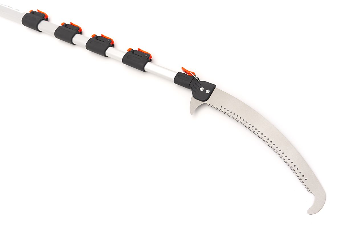 Met deze telescopische snoeischaar snoeit u moeiteloos hoge takken zonder ladder. Het stalen zaagblad met driezijdig geslepen tanden zorgt voor scherpe, snelle en precieze sneden. Dankzij de extra lange uitschuifbare steel, verstelbaar van 1,70 tot 7 meter, bereikt u eenvoudig hoger gelegen takken, terwijl het geïsoleerde aluminium handvat zorgt voor een stevige en comfortabele grip.