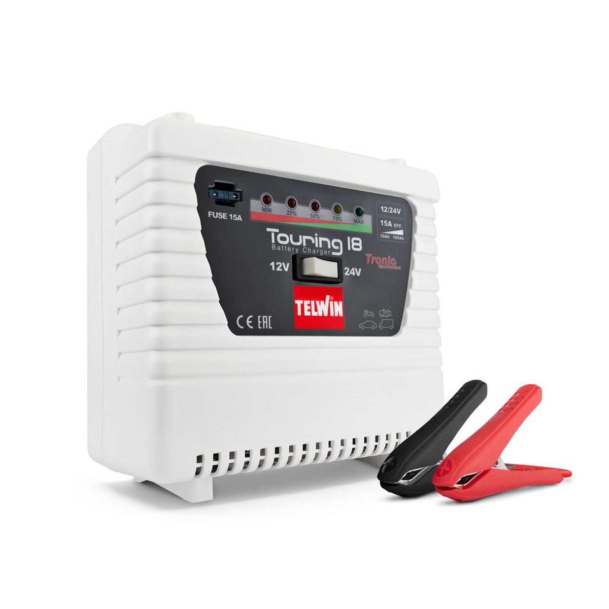 De Telwin Touring 18 is een geavanceerde acculader met elektronische laadcontrole (TRONIC-technologie), ontworpen voor het efficiënt laden en onderhouden van diverse batterijtypes, waaronder WET, GEL, Pb-Ca, AGM, MF en EFB. Geschikt voor zowel 12V- als 24V-batterijen, biedt deze lader automatische onderbreking en herstart van het laadproces, wat zorgt voor een veilige en optimale werking.
