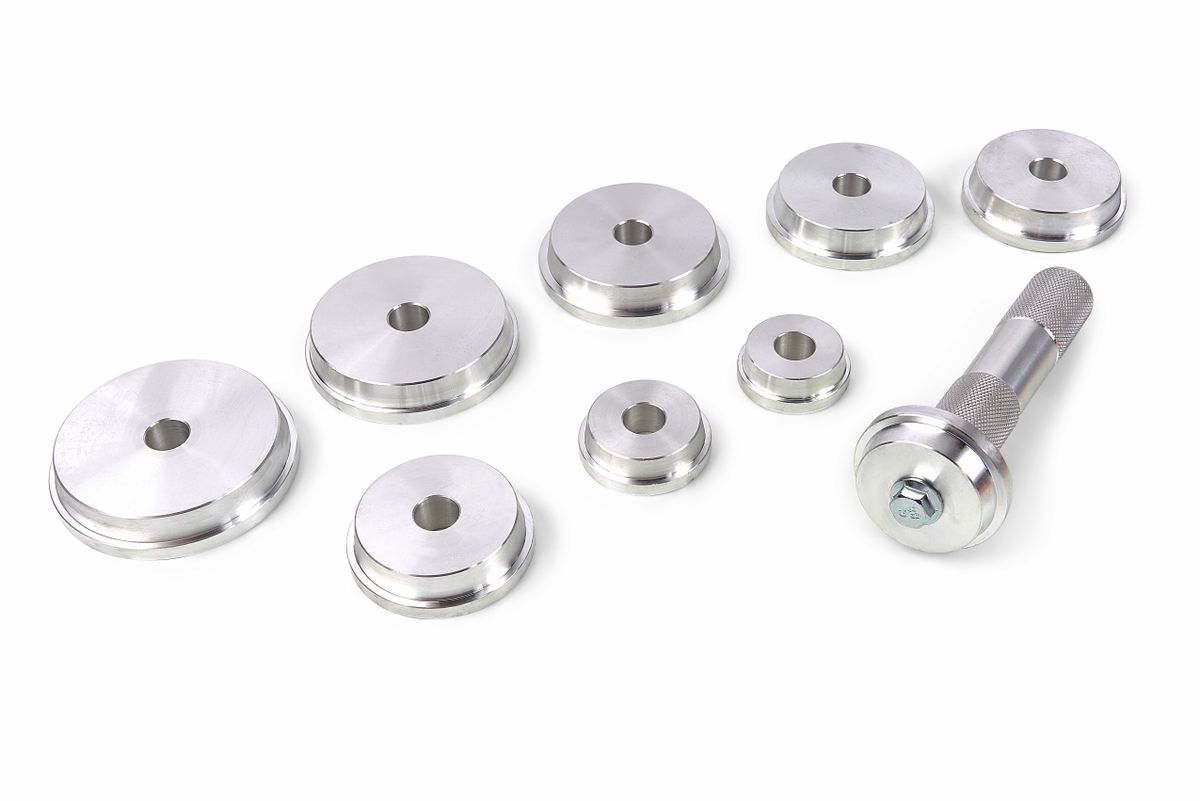 De lager- en pakking drijverset is ideaal voor het installeren van wiellagers en keerringen zonder de asbehuizing te beschadigen. De set is gemaakt van stevig aluminium voor extra kracht en duurzaamheid. De hoogwaardige afwerking zorgt ervoor dat de lagers niet beschadigd raken tijdens gebruik. De universele set bevat 9 drijvers in verschillende formaten voor de meeste standaard wiellagers. De taps toelopende kanten van de drijvers worden gebruikt voor het installeren van keerringen en de platte kanten voor de afdichtingen. Het stevige handvat heeft een geribbeld oppervlak voor betere grip. De levering bevat 1 handvat en 9 drijvers in verschillende maten (39,5 / 44,5 / 50 / 59 / 63 / 65 / 72 / 76 / 81 mm). Alle onderdelen worden netjes opgeborgen in de meegeleverde draagkoffer.