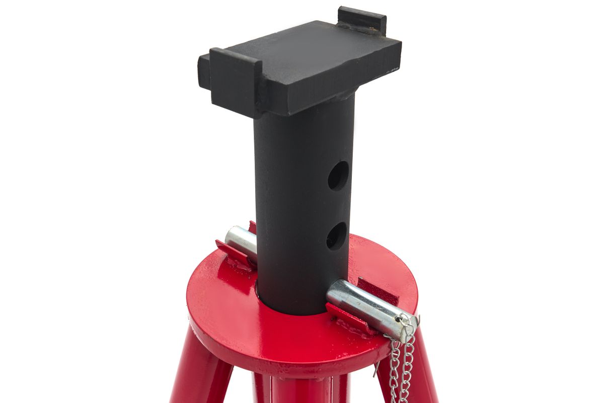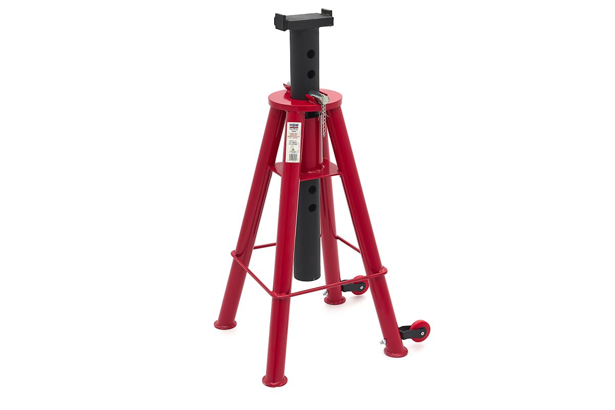 Het wisselen van de banden van een vrachtwagen of andere werkzaamheden aan de onderzijde kun je gemakkelijker uitvoeren door gebruik te maken van deze extra hoge HBM assteun. Neem bij het werken met de assteunen altijd de veiligheid in acht en begeeft je nooit onder een auto als de assteun niet is gezekerd met de borgpen. De borgpen is middels een ketting aan de assteun verbonden. Zorg bij het gebruik van de steunen voor een vlakke ondergrond, zodat alle vier de voeten van de assteunen stevig op de grond staan.