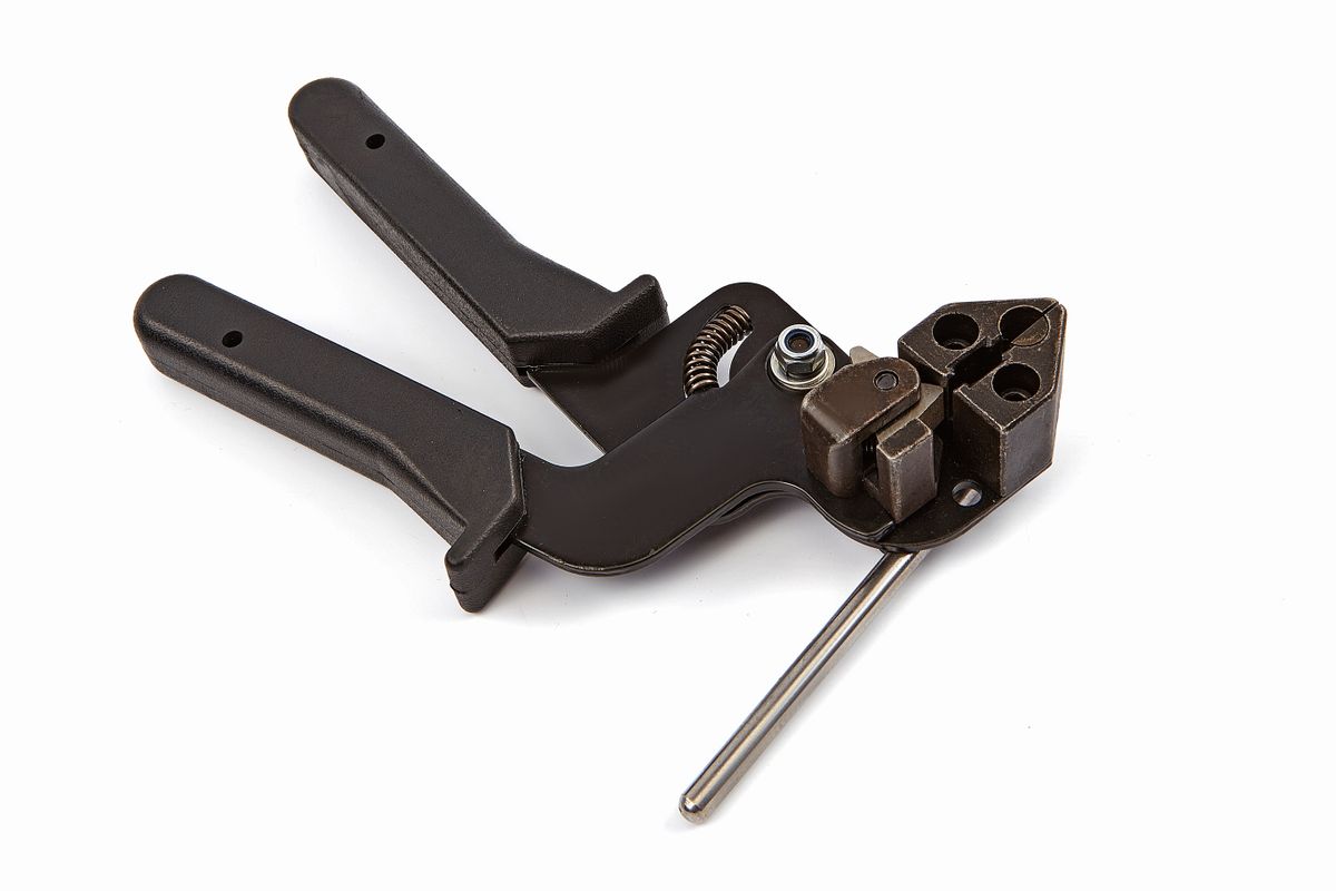 Kabelbindertang voor RVS kabelbinders geschikt voor kabelbinders Van 4,6 tot 12,0mm. Na het aantrekken kan de kabelbinder onder de kop worden afgeknipt door middel van het overhalen van een hendel op de tang.