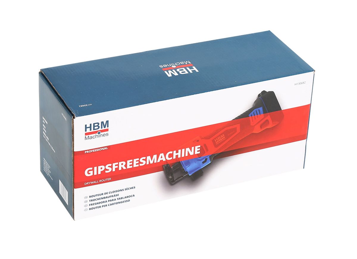 Deze HBM gipsfreesmachine is ideaal voor het maken van uitsparingen in reeds gemonteerde gipsplaten. De diepte instelling is gemakkelijk te veranderen zonder gereedschap en de frezen kunnen eenvoudig vervangen worden door de asblokkering. De machine is voorzien van een softgrip handgreep voor meer comfort.