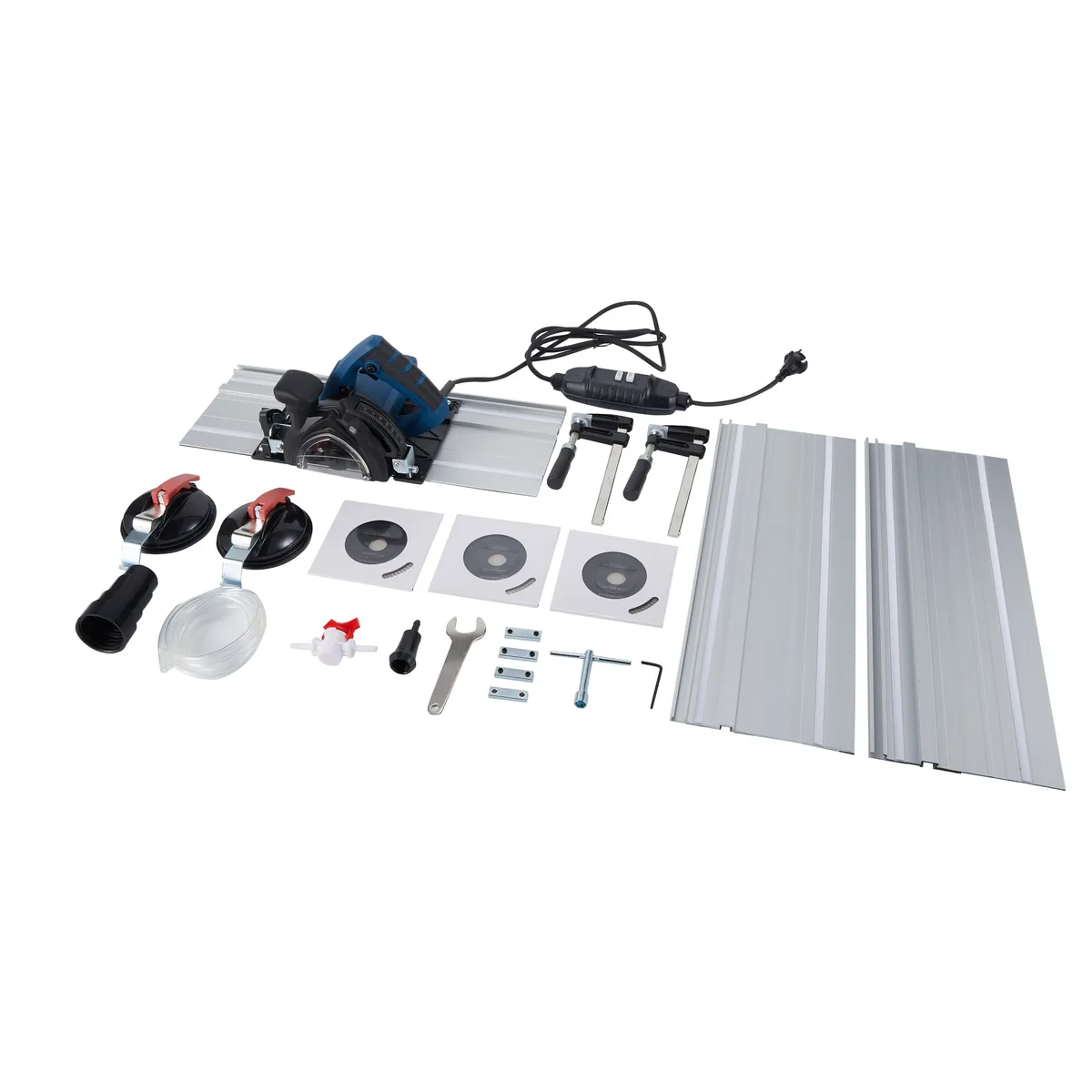 De HBM 1400W steen handzaagmachine watergekoeld met Liniaal is ontwikkeld voor het nat en draagzagen van keramische tegels, steen en zacht beton. Groot voordeel van deze handzaagmachine is dat het zagen van grote tegels zeer gemakkelijk gaat in combinatie met de linialen welke aan elkaar te koppelen zijn. Daarnaast zorgen de zuignappen voor extra stabiliteit zodat de liniaal niet weg kan schuiven tijdens de zaagklus. De voet/zool van de zaagmachine is in te stellen in graden zodat tegels onder een bepaalde hoek mooi op elkaar aansluit.