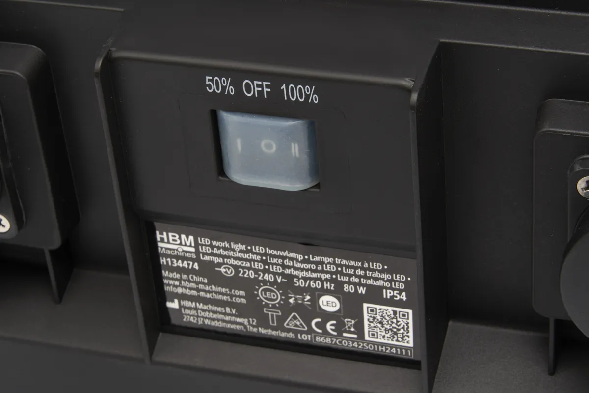 Verlicht je werkplek optimaal met deze krachtige 80W LED bouwlamp. Met 180 LED’s en een lichtopbrengst van 9200 lumen, biedt deze lamp helder 5000K wit licht voor uitstekend zicht. Dankzij de IP54-bescherming is hij stof- en spatwaterdicht, ideaal voor zowel binnen- als buitengebruik. Klasse 1 veiligheid en een robuust ontwerp maken hem perfect voor bouwplaatsen, garages en werkplaatsen.
