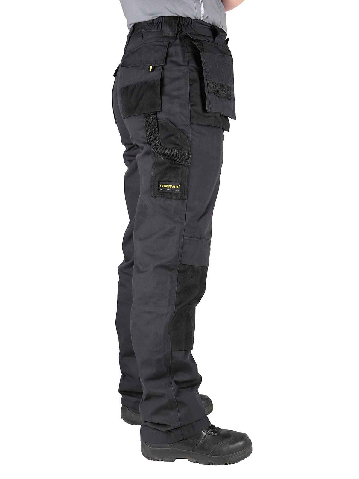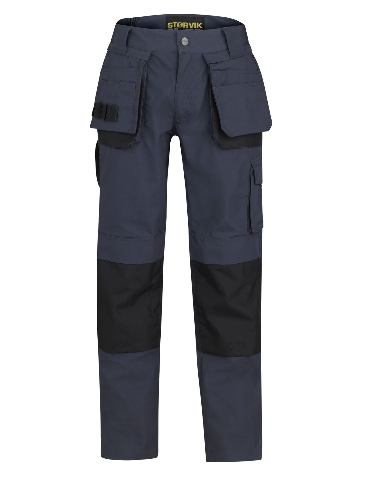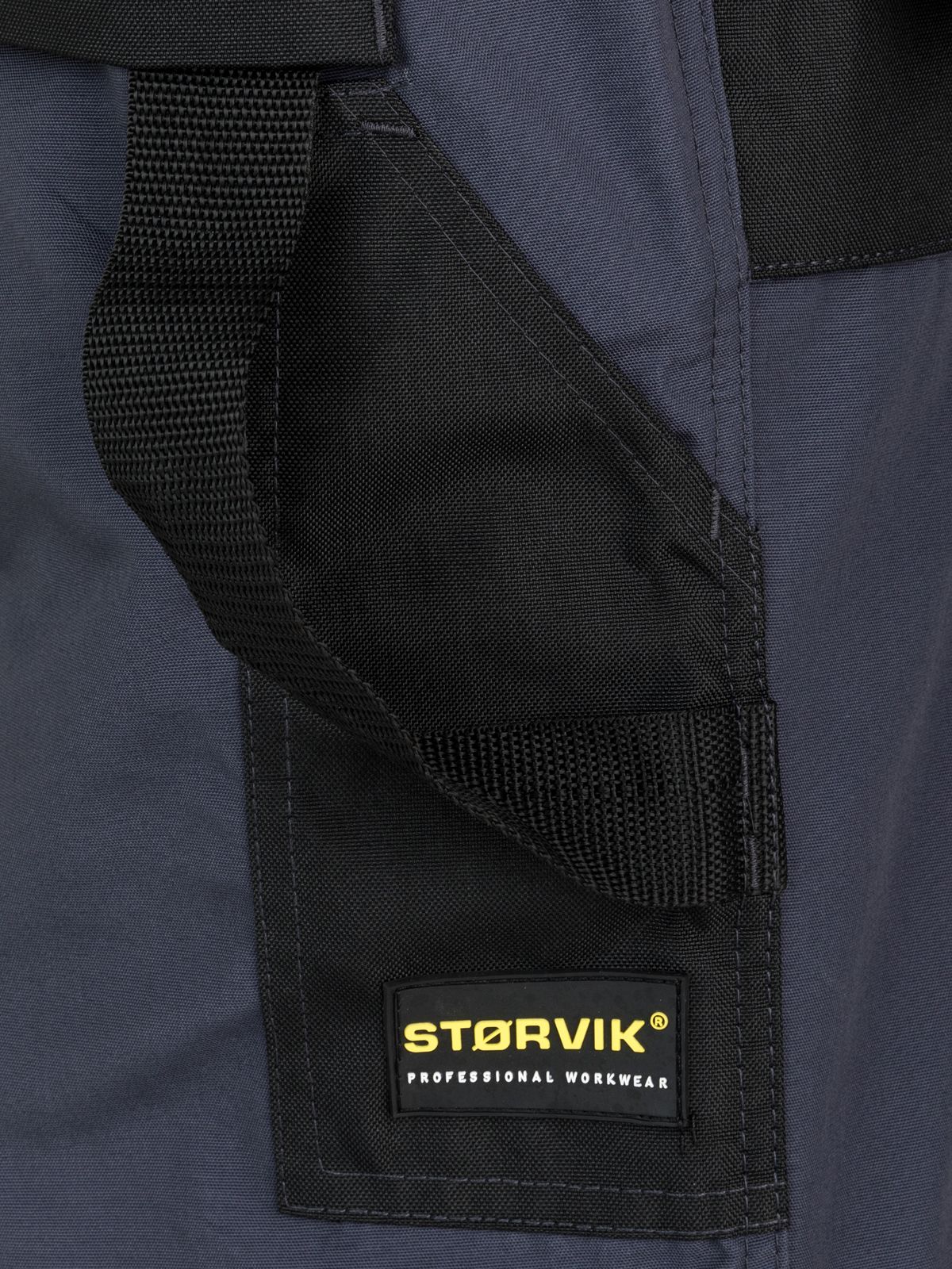 Zoek je een stevige werkbroek om in te werken op de bouw, in de tuin of bij het klussen rondom het huis. Dan is de David Werkbroek van STØRVIK de ideale oplossing. De stof is namelijk slijtvast (65% polyester, 35% katoen) en het gewicht van de broek is 270 gram /m2. Door een uitlegbare dubbele zoom maak je de David 3cm langer. Verder is de werkbroek elastisch in de taille, heeft drievoudig gestikte naden en heeft een hamerlus en grote riemlussen voor een gereedschapsriem, waarvan twee aan de achterkant met klittenband te openen zijn. De broek heeft ook verschillende zakken, namelijk: twee open en twee met klittenband afsluitbare heupzakken, twee klittenband kontzakken en een duimstokzak. En op beide knieën zitten verstevigde kniezakken voor kniekussens en de broek heeft ook twee afritsbare workerzakken met open zakken en pennenzakken- en houders