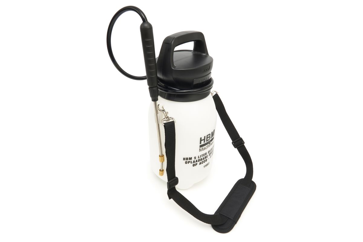 Onkruid of bladluis bestrijden door gif te sproeien, is met deze elektrische drukspuit nu een stuk minder vervelend. Nooit meer elke minuut opnieuw pompen om de druk te verhogen! Gewoon relaxed met de draagriem om je schouder, de elektrische pomp het werk laten doen en spuiten maar. Zo kan je nu geconcentreerd in de gaten houden of je overal bent geweest en sla je nooit meer per ongeluk stukjes over. Deze oplaadbare drukspuit hoeft natuurlijk niet alleen gebruikt te worden voor het spuiten van gif, maar kan ook voor het bewateren of bemesten van je balkon- of kamerplanten worden gebruikt. Met de 5 liter inhoud van de watertank / drukvat hoef je in ieder geval niet snel bij te vullen. Op het zwarte pomphuis geeft een LED indicator, zowel tijdens gebruik als tijdens het opladen aan, wat de status van de accu is. Opladen geschiedt door de meegeleverde USB kabel op een USB oplader (niet meegeleverd) aan te sluiten, die op het pomphuis aangesloten wordt. De sproeilans is uitschuifbaar en de sproeikop kan worden ingesteld voor het sproeien met een een brede gewaaierde- of juist gerichte straal.