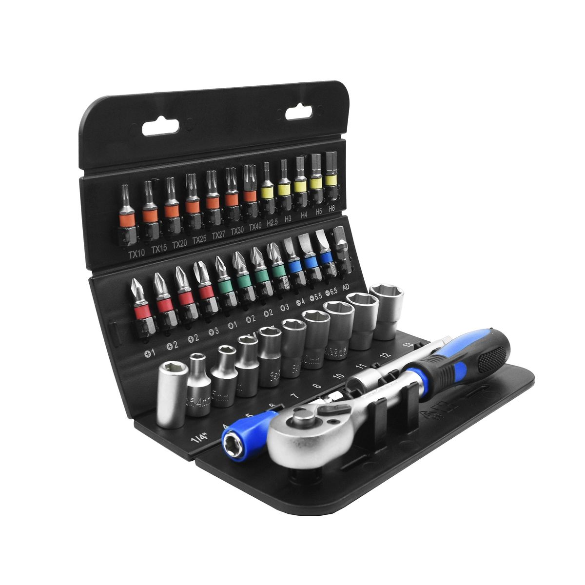 De HBM 37-delige 1/4″ Dop- en Bitset is een veelzijdige en complete set gereedschappen, ontworpen voor zowel professionele vakmensen als enthousiaste doe-het-zelvers. Deze set biedt een uitgebreide selectie van dopsleutels en bits, ideaal voor het uitvoeren van verschillende werkzaamheden waarbij precisie en veelzijdigheid vereist zijn.