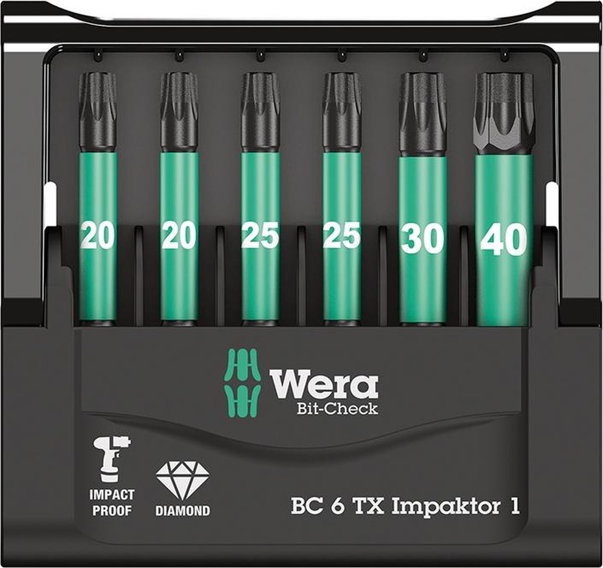 Wanneer je op zoek bent naar uitzonderlijke duurzaamheid en prestaties voor jouw accuschroefmachine, biedt de Wera Bit-Check Impaktor 6 TX de perfecte oplossing. Deze set bevat de zes meest gangbare TX bits (TX 20, 25, 30 en 40) die speciaal zijn ontworpen voor slagschroefmachines. Dankzij een mix van hoogwaardige materialen en aangepaste geometrieën bieden deze bits buitengewone standtijden, zelfs bij extreem gebruik. De kleine diamantdeeltjes op de bitpunt zorgen voor een superieure grip en voorkomen het uitglijden uit de schroefkop, waardoor je moeiteloos en efficiënt kunt werken.