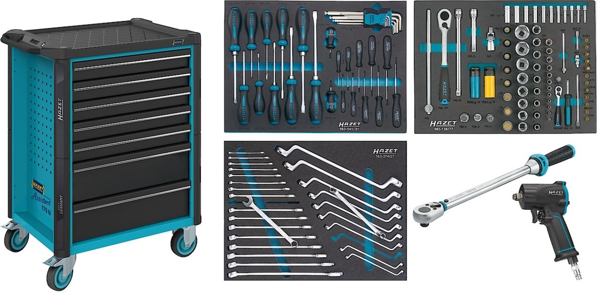 Met deze Hazet gevulde gereedschapswagen, 137-delig, zwart blauw haal je een complete toevoeging aan jouw werkplaats in huis. De wagen is voorzien van vijf ondiepe en twee diepe laden en is voorzien van grotere wielen voor meer soepelere verplaatsing. En wordt geleverd met verschillende soorten gereedschap in diverse uitvoeringen en maten.