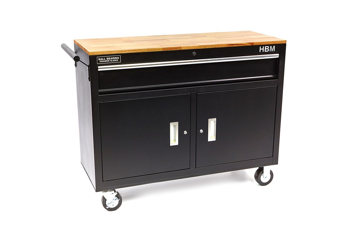 Als je op zoek bent naar een gereedschapswagen die flexibiliteit én stevigheid biedt, dan is deze verrijdbare wagen iets voor jou. Het compacte design, de vele opbergruimte en de professionele look maken deze werkbank de perfecte oplossing voor zelfstandige vakmannen én bedrijven die een multifunctionele oplossing zoeken voor het inrichten van de werkruimte. De zwarte, effen afwerking geeft de wagen een professionele, verzorgde look. Zowel de brede lades bovenaan als de kleine kastjes onderaan bieden meer dan voldoende ruimte voor het opslaan van tools en materialen. Dankzij twee zwenkwielen, waarvan één met rem, en twee bokwielen heb je tijdens het rijden meer controle over de wagen. Ook de RVS handgreep komt hierbij goed van pas. Alle lades zijn uitgerust met dubbelgelagerde geleiders.