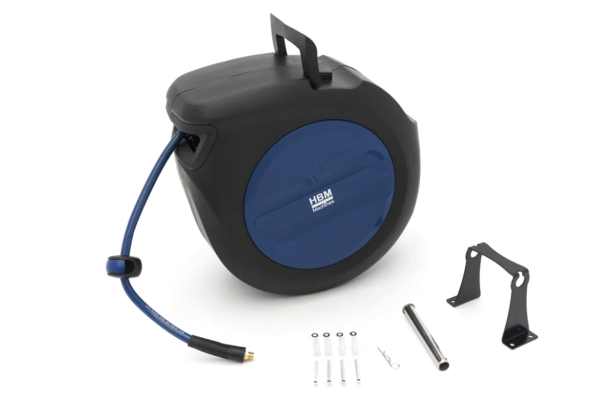 Met deze HBM luchthaspel heb je op elke plek de beschikking over perslucht. Het automatisch vergrendelings- en intreksysteem zorgt ervoor dat de slang altijd op de gewenste lengte blijft en na afloop van de werkzaamheden netjes wordt opgerold. Een stevige behuizing draagt zorg voor de bescherming van de slang. De 180 graden draaibare montagesteun geeft maximale flexibiliteit, zodat u in elke hoek van uw werkruimte optimaal kunt werken.