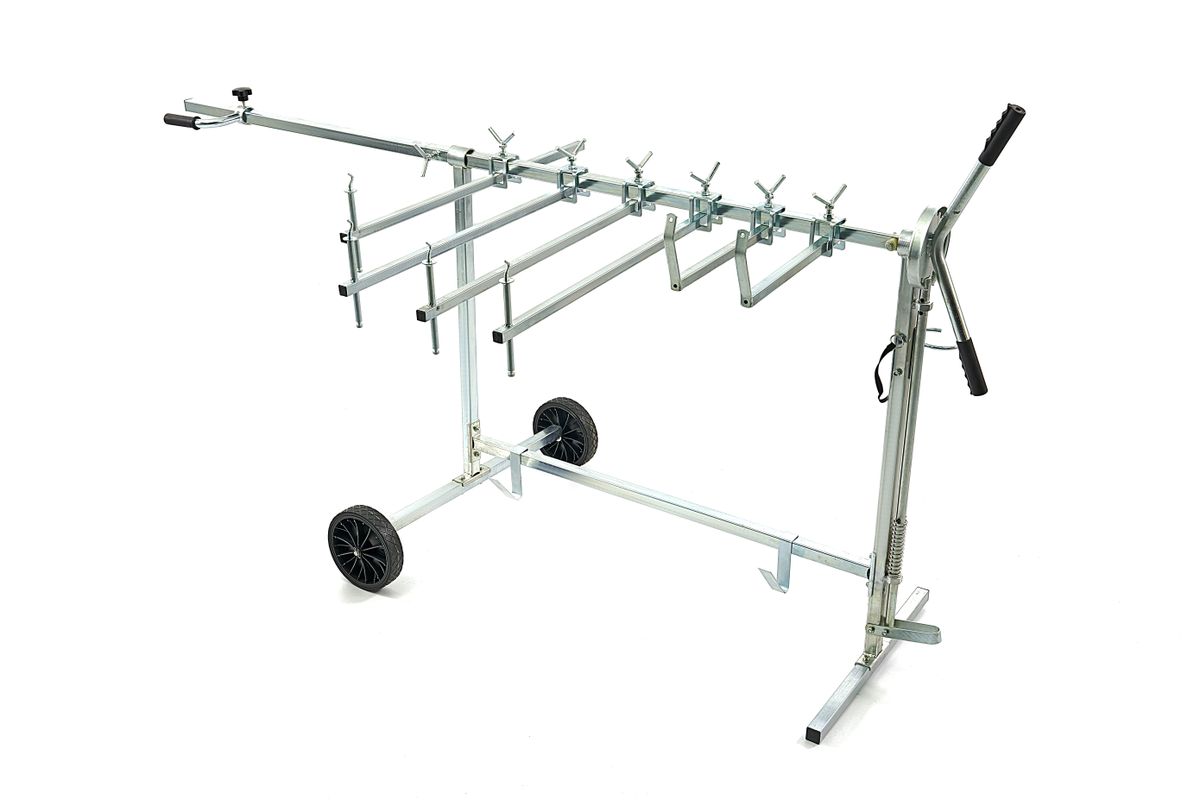 Een robuuste standaard voor superieur spuitwerk en schuurwerk. Dit product is afgestemd op het werken met auto-onderdelen en wordt geleverd met adapters voor kappen, deuren, spiegels, schermen en bumpers. De standaard is op veel verschillende manieren verstelbaar en heeft een draagkracht tot 35 kilo, zodat je alle delen van het exterieur kunt behandelen. Met deze spuitstandaard hoef je je werk niet te onderbreken – en daardoor krijg je een netter resultaat, werk je makkelijker en bespaar je veel tijd. Over de HBM Verrijdbare en Draaibare Spuitstandaard, Schuurstandaard Een stabiele, veilige standaard die helemaal aansluit op de praktijk van de autospuiter. Door de meegeleverde adapters kan je elk onderdeel van een auto spuiten en schuren: spiegels, velgen, tankklepjes, bumpers enzovoort. De zes instelbare houders van de standaard geven een uitstekende grip op het werkstuk en zijn geschikt voor bijna alle maten. Door de handige voethendel kan je efficiënt met één hand werken, en het demonteerbare verlengstuk zorgt dat je elke plek van de auto kan bereiken. Het resultaat is dat je een gelijkmatiger spuitresultaat krijgt en flink wat tijd uitspaart. Deze spuitstandaard is gemaakt van verzinkt staal en kan dus tegen een stootje en wordt geleverd met een spuitpistoolhouder.
