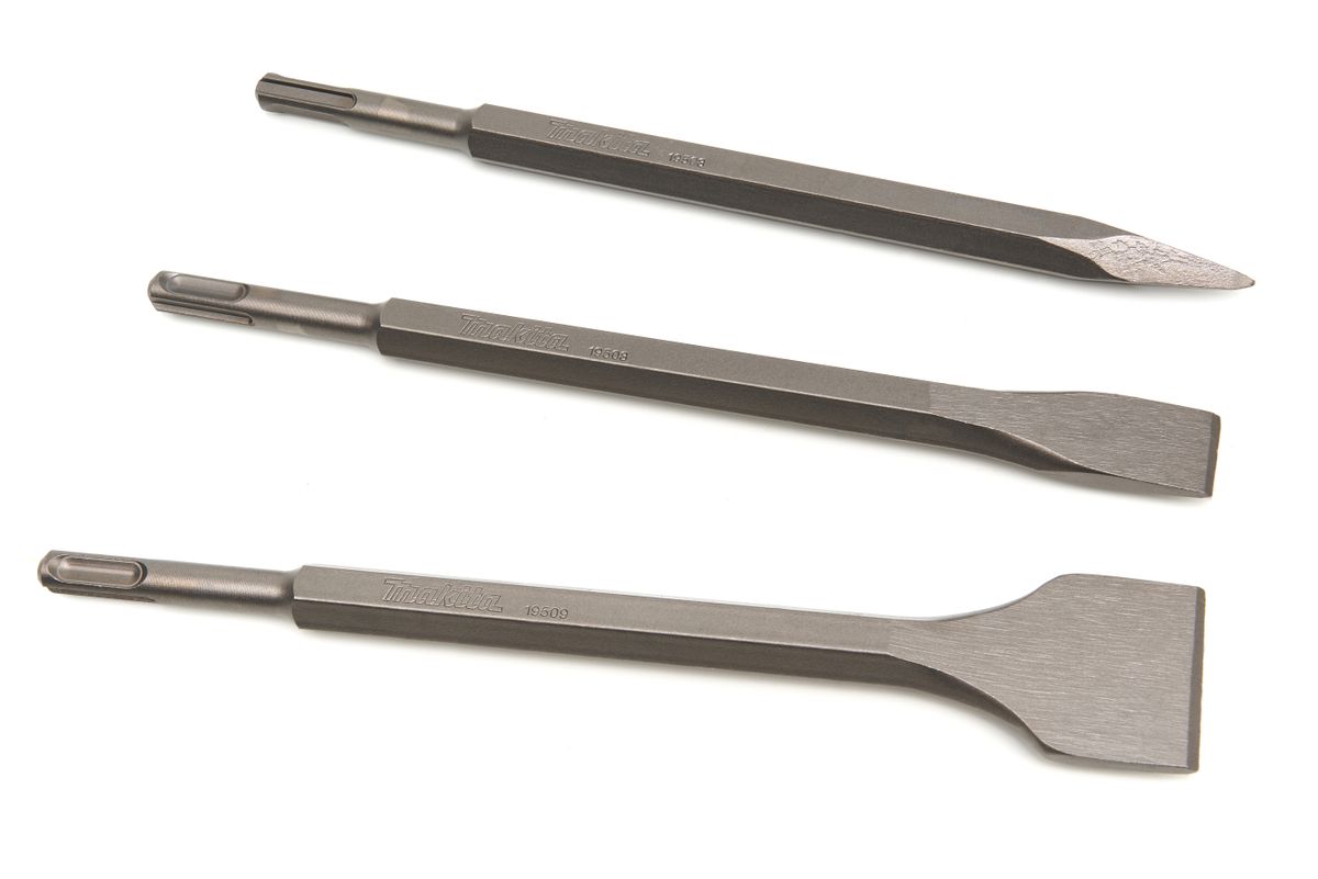 • Makita 3-delige SDS plus beitelset bevat: Puntbeitel Vlakke beitel Spadebeitel