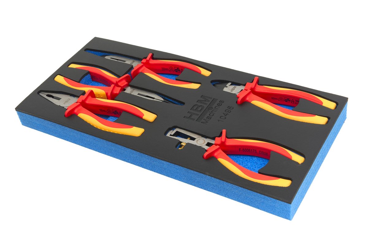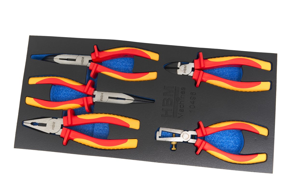 Een goede set tangen maakt kleinschalig knip-, grijp- en bevestigingswerk zoveel makkelijker. In deze set vind je verschillende soorten tangen, zodat je flexibel bent. Over de HBM 5 Delige Professionele VDE Tangenset De bek van elke tang bestaat uit hoogwaardig metaal en is dus goed bestand tegen een hoge weerstand en intensief, dagelijks gebruik. Daarbij oogt de set ook een stuk professioneler dankzij de bi-color afwerking met geel en oranje op het handvat. Je haalt de tangen in één enkele beweging uit hun compartiment, doordat er extra holtes in de foam inlay zitten. Ook leg je ze op die manier veilig terug. Een onmisbare uitbreiding voor professionele elektriciens, loodgieters en meer.
