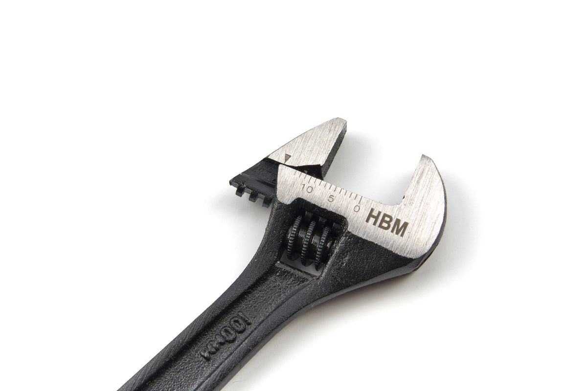 Voor iedere maat moer of bout heb je een andere maat steeksleutel nodig. Het gevolg is dat je van steeksleutels altijd een groot aantal moet hebben. Dat is in vele situaties niet handig. Dat is waar de verstelbare moersleutel voor is uitgevonden! Een moersleutel is in feite een variabele steeksleutel! Verstelbare moersleutels zijn niet meer weg te denken in de werkplaats, en zijn een standaard tool in iedere gereedschapskist. Zeker voor de klusser op locatie is de verstelbare moersleutel een stuk gereedschap dat veel handzamer mee te nemen is dan een hele reeks steeksleutels. De bek van een verstelbare moersleutel kan worden vergroot of verkleind door aan het worm-kartelwiel in de kop te draaien. Zo heeft de verstelbare moersleutel een groot bereik aan moer- en bout maten. Of het nu imperiale (inch) maten of metrische maten betreft, bij een moersleutel maakt dat niet uit! Ook kunnen de HBM moersleutels worden opgehangen aan een gereedschapsrek, dankzij het gat in de steel. Van iedere moersleutel kan de bek volledig worden dichtgedraaid, zodat hij compact mee te nemen is. De maximale opening van de bek bepaald tot welke boutmaat de sleutel kan worden gebruikt. Zo bestaan er hele kleine handzame verstelbare moersleutels, maar ook zeer robuuste zware en grote verstelbare moersleutels. Uiteraard geldt bovendien dat de grotere maten bouten en moeren een steviger constructie van de verstelbare moersleutel vereisen. Ook is het handvat (de steel) langer naarmate de maximale bekopening groter is, zodat je er grotere momenten (koppels) mee kan overbrengen. HBM biedt u een uitgebreide collectie verstelbare moersleutels. Alle moersleutels zijn gemaakt van hoogwaardig gesmeed staal dat de nodige warmte behandelingen heeft ondergaan om taai en sterk te zijn, zodat de moersleutels een leven lang mee gaan. De maten variëren van zeer klein en compact, passend in iedere broekzak, tot extreem groot en zwaar, voor de grootste maten moeren en bouten, waar men veelal niet eens meer een steeksleutel voor in huis heeft. Kies hieronder de juiste moersleutel die het maatbereik heeft dat je nodig hebt en je zult nooit meer verlegen zitten om de juiste maat sleutel!