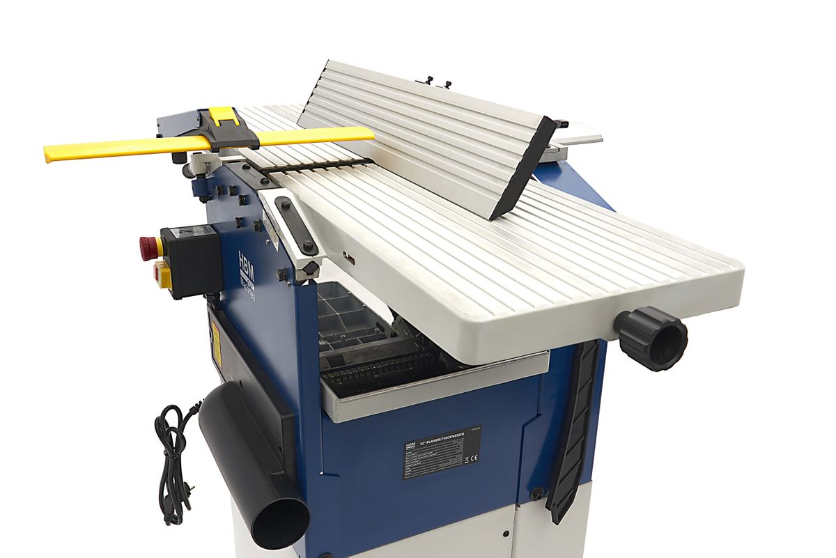 Dankzij deze HBM vlak en van dikte bank gaat het verspanen van houten onderdelen in één keer een stuk sneller en gemakkelijker. De bank is voorzien van alle functionaliteiten en uitbreidingen om uitstekend werk te leveren. Zowel het motorvermogen als het toerental maken snel en nauwkeurig werk mogelijk. Deze vlak- en vandiktebank is perfect voor de veeleisende houtbewerker, welke professionele en betrouwbare prestaties verwacht van een degelijke en duurzame machine, maar niet de capaciteit nodig heeft van bijvoorbeeld een hele zware vlak- en vandiktebank. De aanvoerzijde is makkelijk en nauwkeurig af te stellen met de hendel en duidelijke schaalverdeling naast de tafel. Je kunt er tal van werkzaamheden mee verrichten, zoals bijvoorbeeld het op dikte en breedte glad schaven van planken en balken. Ook kun je eenvoudig hout aan twee zijden nauwkeurig op breedte en dikte schaven.