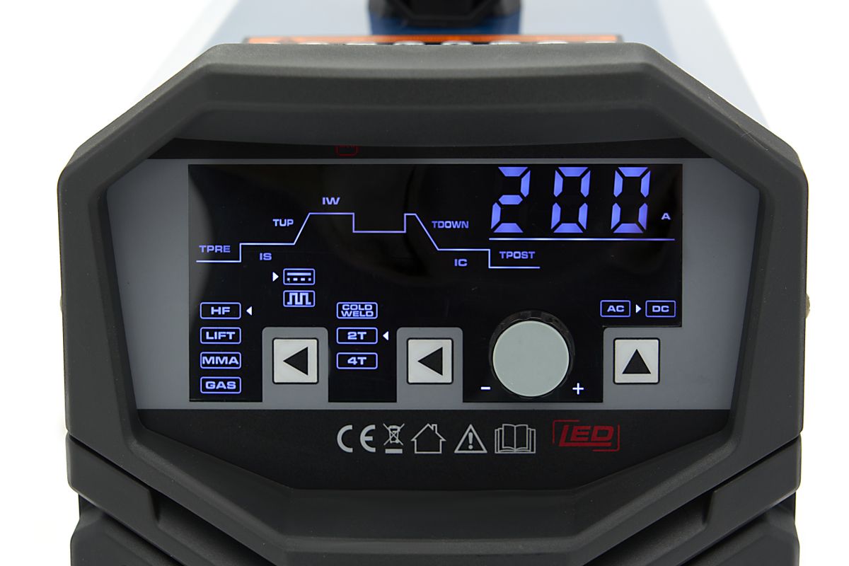 De HBM TIG 200EJ AC/DC is een veelzijdige lasmachine die geschikt is voor zowel TIG- als elektrode-lassen (MMA) in AC en DC. Deze compacte eenheid werkt op 110 of 220 volt en past zich automatisch aan de ingangsspanning aan. Met een instelbaar lasbereik van 10 tot 200 ampère (TIG) en 10 tot 180 ampère (MMA), biedt de machine nauwkeurige controle voor uiteenlopende materialen zoals staal, RVS en aluminium. De geavanceerde functies zoals AC-balansregeling (20–80%), instelbare AC-frequentie (40–200 Hz) en voor- en nagastijd zorgen voor een professioneel lasresultaat. De pulse-functie maakt gecontroleerd lassen op dunne plaat mogelijk. Dankzij het compacte formaat (465 × 190 × 290 mm) en een gewicht van slechts 11,7 kg is de machine makkelijk mee te nemen. Met een duty cycle van 60% bij ca. 110 ampère en IP21S-bescherming is dit toestel uitstekend geschikt voor intensief werk in werkplaats of op locatie.