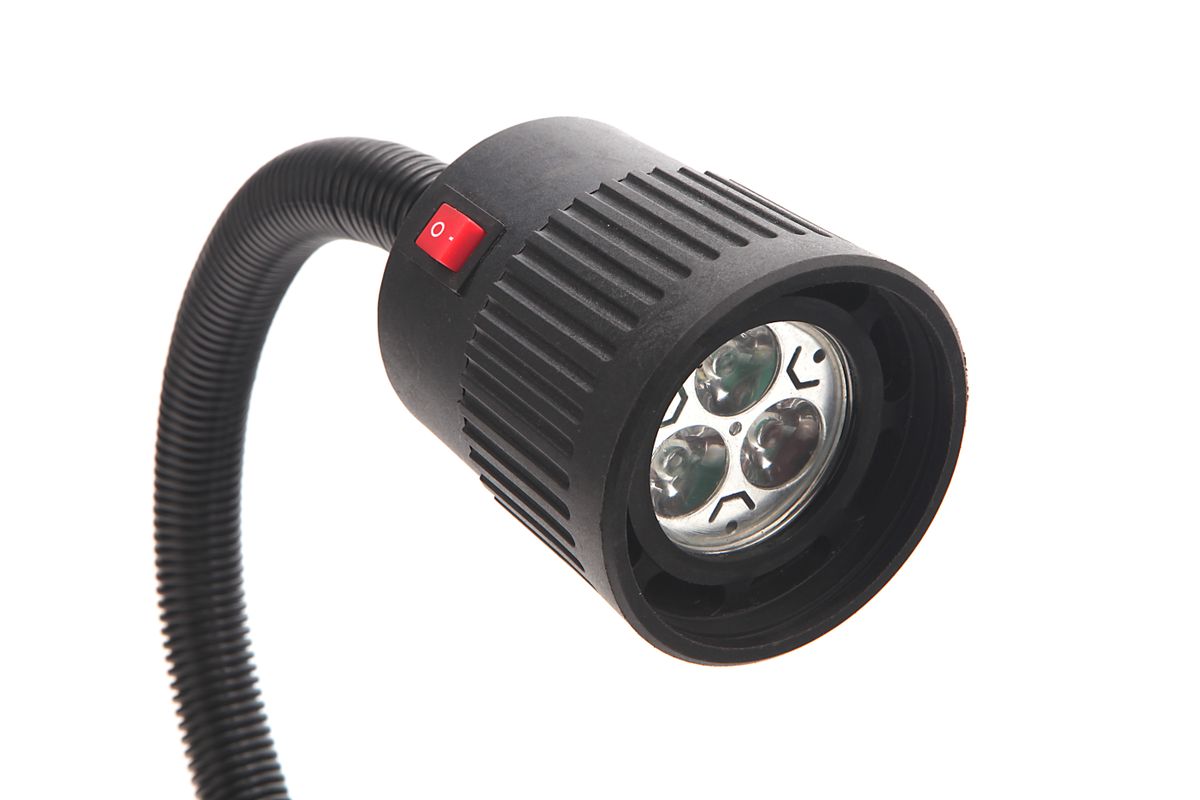 Ausgestattet mit drei leistungsstarken LED-Lampen, verstellbar durch einen flexiblen Arm. Lampe mit eingebautem Transformator.