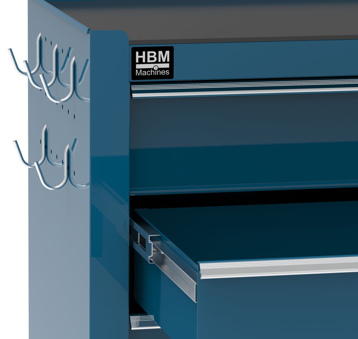 De HBM Gereedschapswagen met 5 laden (62 cm) in blauw is een praktische oplossing voor het netjes opbergen van gereedschap. Door het compacte formaat past hij moeiteloos in elke werkplaats, garage of hobbyruimte. De wagen biedt voldoende ruimte voor dagelijks gebruik en houdt alles overzichtelijk. De laden lopen soepel op kogellagers en zijn geschikt voor zwaardere belasting. Dankzij de stevige constructie en het functionele ontwerp is langdurig gebruik geen probleem.