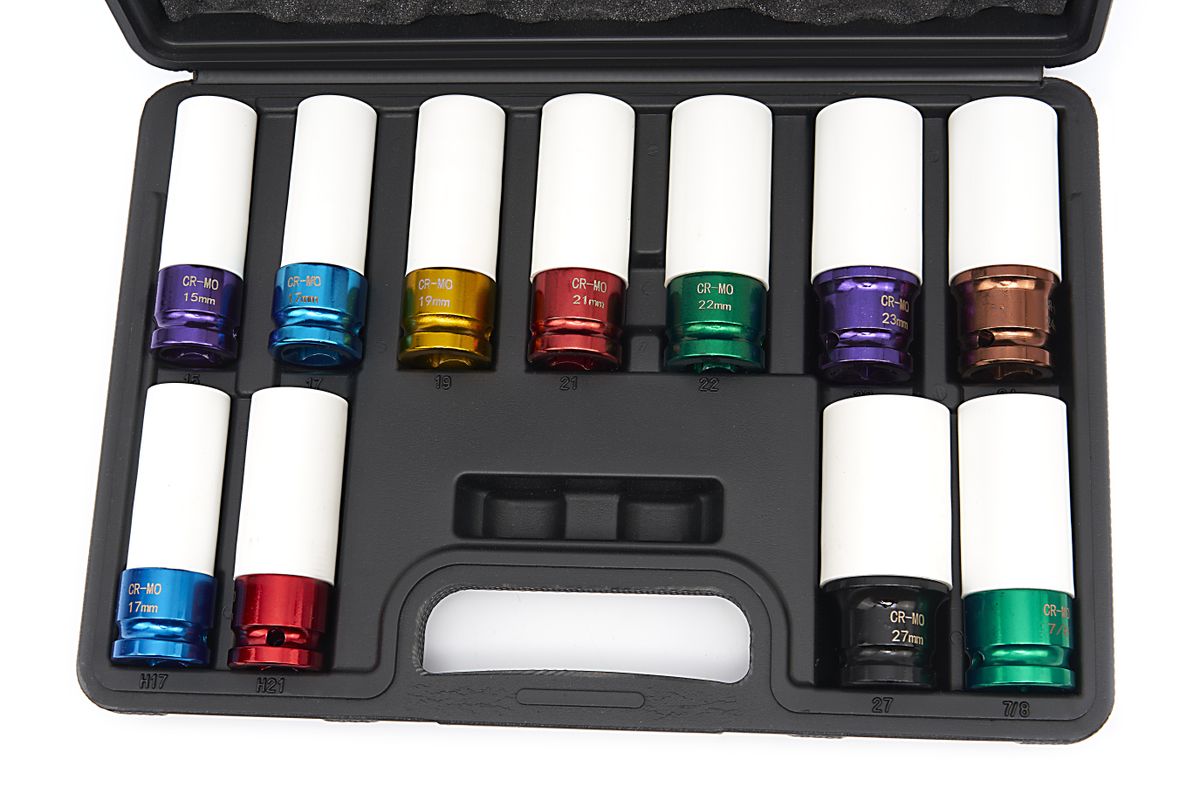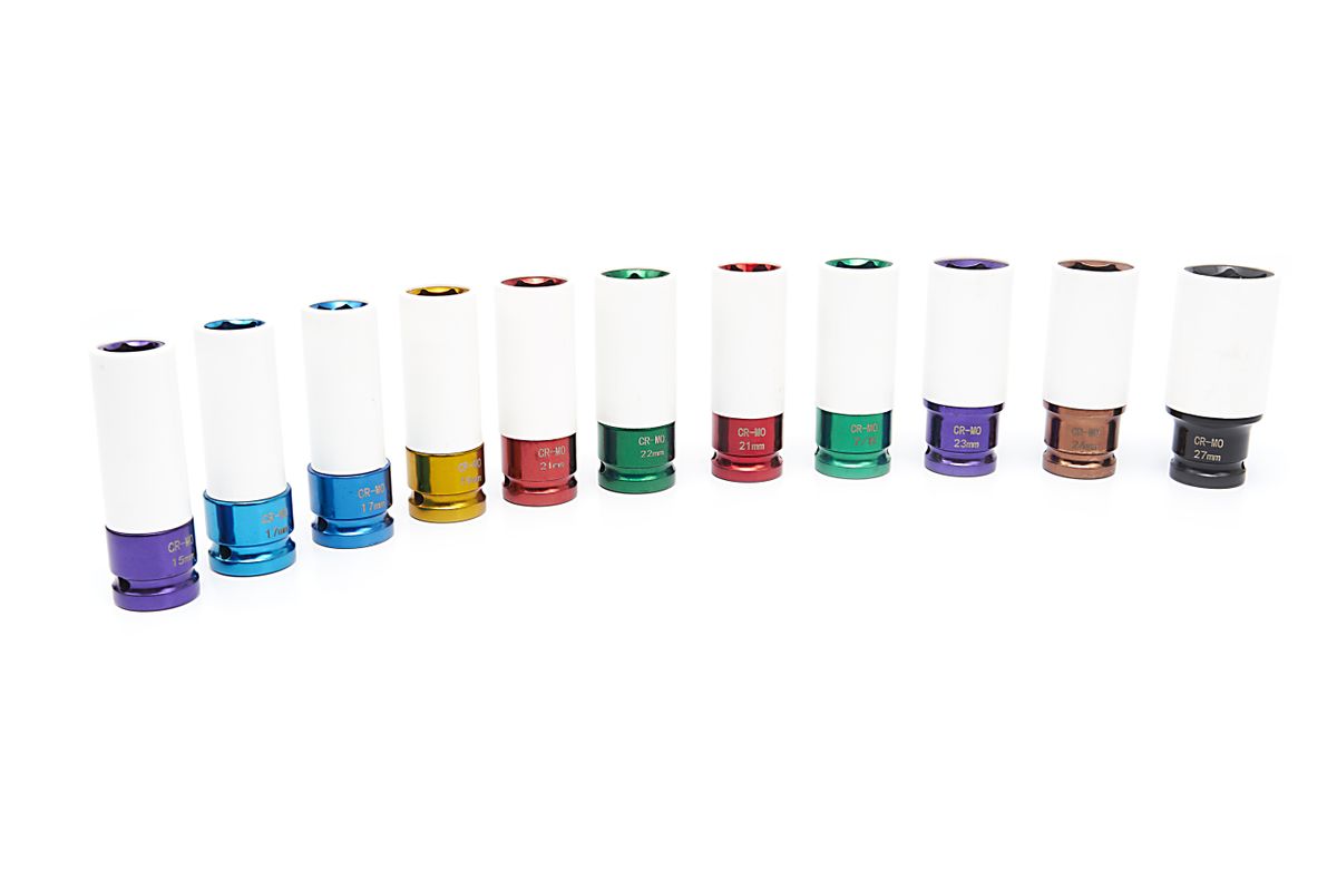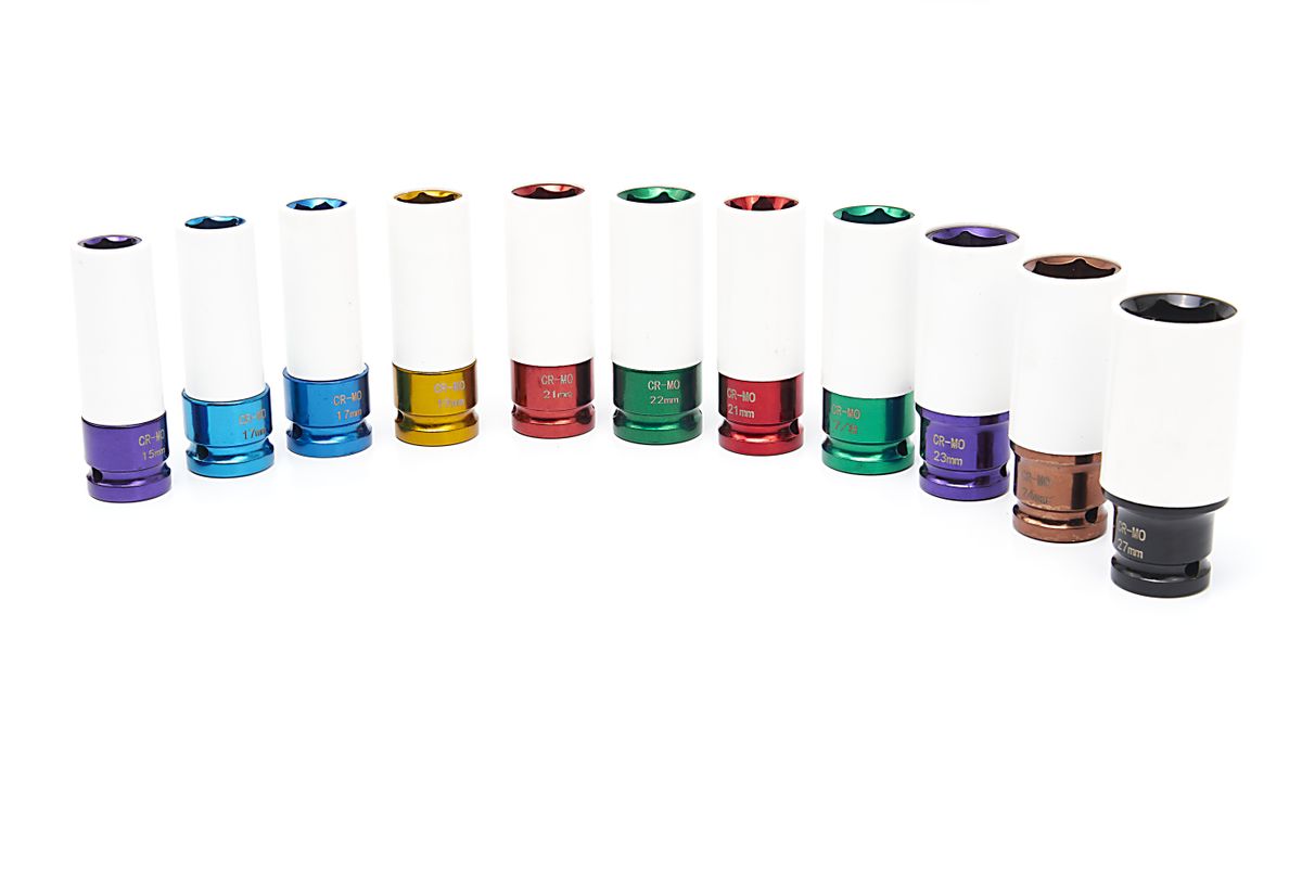 De HBM 11 Delige 1/2″ Lange Krachtdoppenset met Beschermkappen is ideaal voor intensief gebruik bij wielmontage en zwaar schroefwerk. De doppen zijn extra lang en voorzien van kunststof hulzen die velgen beschermen tegen krassen. Dankzij de verschillende kleuren zijn de doppen snel van elkaar te onderscheiden. Perfect voor werkplaats of garage.