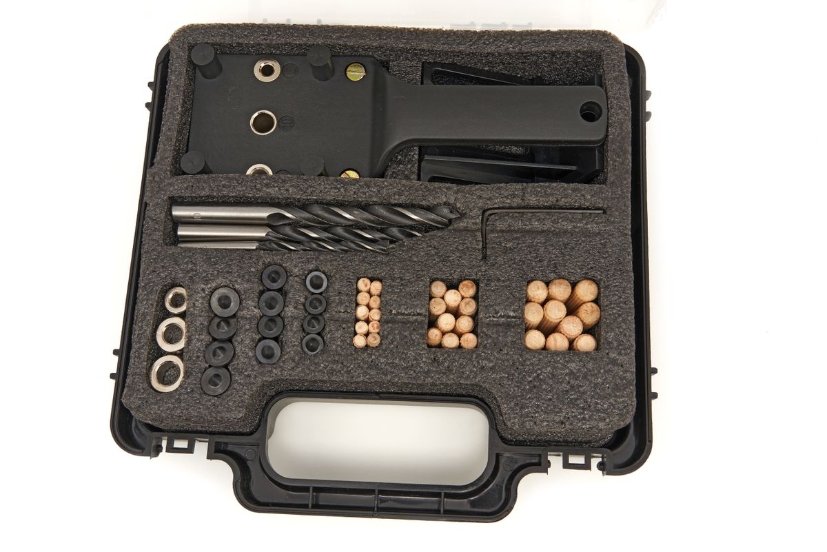 Deze HBM Universele 6 / 8 / 10 mm Houtdeuvelsetis geschikt voor hoek-, T-, en vlakverbindingen. Met deze houtdeuvelset kun je eenvoudig onderdelen klemmen, boren en deuvelen zonder meten of markeren. Geschikt voor houten deuvels van 6, 8 en 10 mm met een dikte van 6 tot 10 mm.