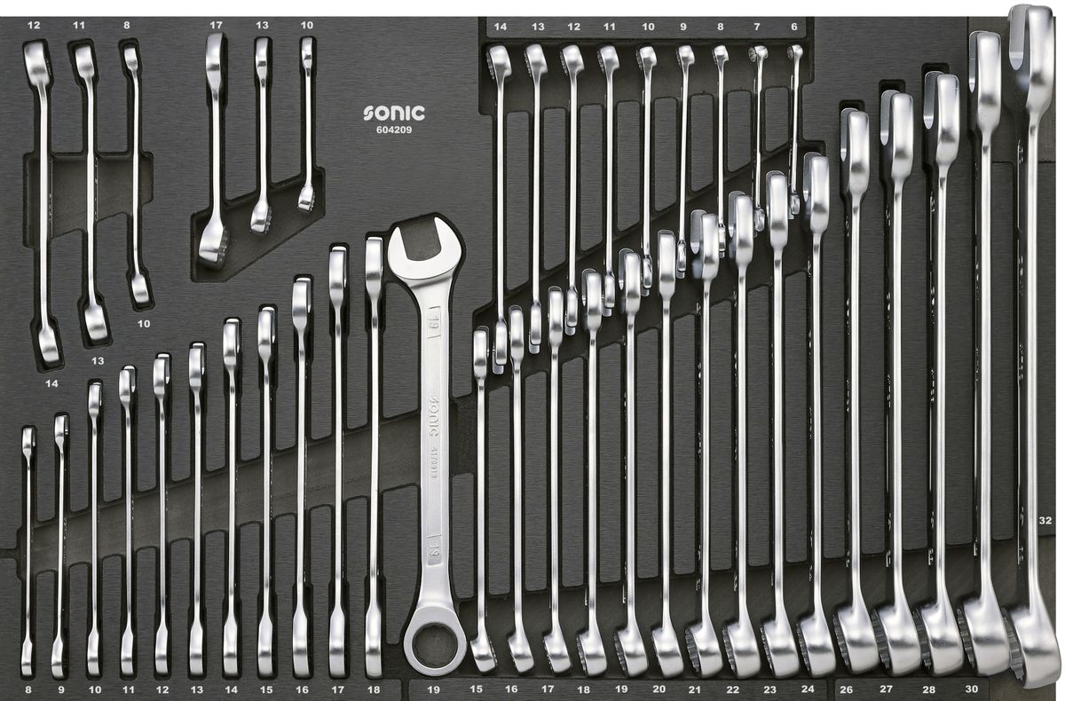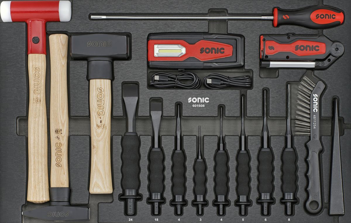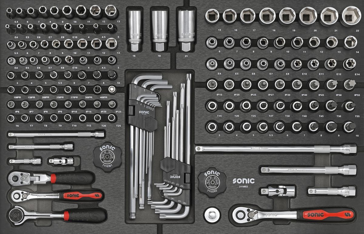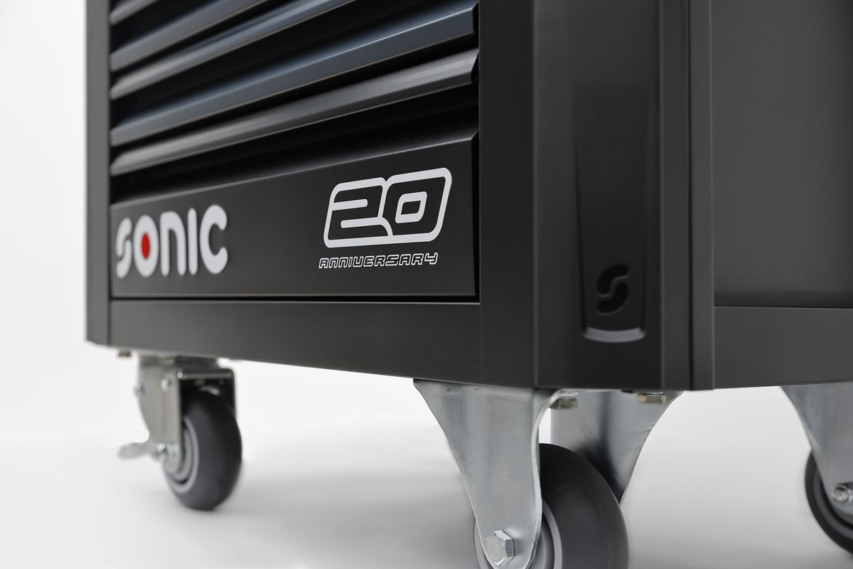 De S9 NEXT 20th Anniversary gereedschapswagen is een limited edition gereedschapswagen met 8 laden, waarvan 7 gevuld met 430-delige gereedschapset geproduceerd in een individueel genummerde serie van slechts 750 stuks en afgewerkt in signaalzwart. Deze speciale editie wordt geleverd met een uitgebreide set gereedschap en efficiënt georganiseerd in Sonic Foam System inlays die qua layout geoptimaliseerd zijn om het handgereedschap snel te vinden en je set compleet te houden. Inbegrepen is een uitgekiende selectie van Sonic’s nieuwste producten, waaronder een NEXT momentsleutel, een set ultradunne ratelsleutels en TX-plus doppen en dopsleutels. Daarnaast bevat deze editie een laptop-/monitor- en tablethouder waarmee je deze veilig kunt bevestigen en tevens het werkblad vrijhoudt.