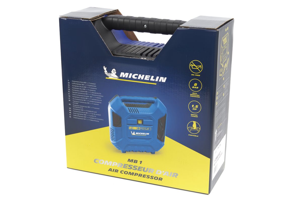 Deze zeer compacte en draagbare minicompressor is geschikt voor recreatief gebruik. De Michelin Air Force compressor set is overal inzetbaar. Ideaal voor persoonlijk gebruik bij bijvoorbeeld het schoonblazen van filters, snel oppompen van auto- en fietsbanden tot 2.5 Bar, fietsbanden van racefietsen, luchtbedden, springkussens en dergelijken. Handig en je neemt hem makkelijk mee naar een klus. Is de bijgeleverde luchtslang van drie meter niet voldoende? Kijk dan eens in de webshop bij onze automatische luchthaspels. Deze zijn beschikbaar in verschillende lengtes, zodat je altijd overal bij kunt en genoeg bewegingsvrijheid hebt. De set is voorzien van diverse hulp- en verloopstukken.