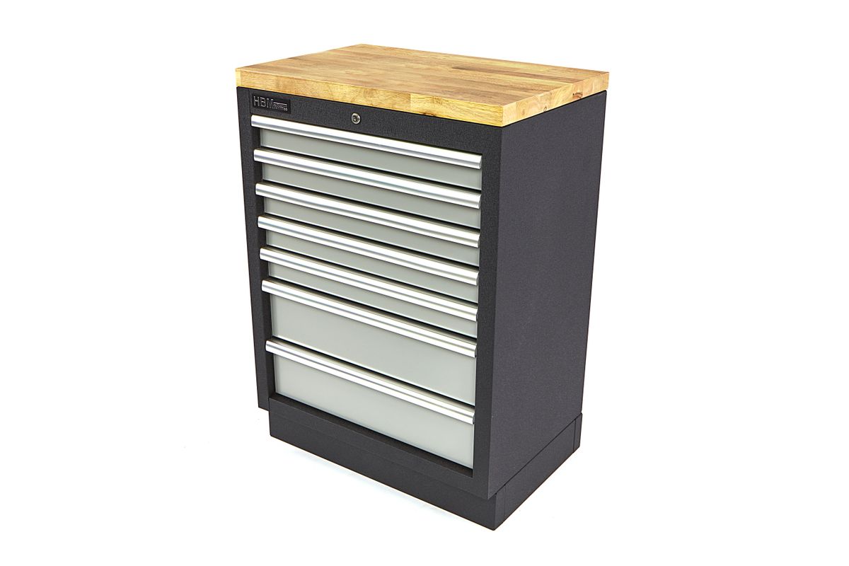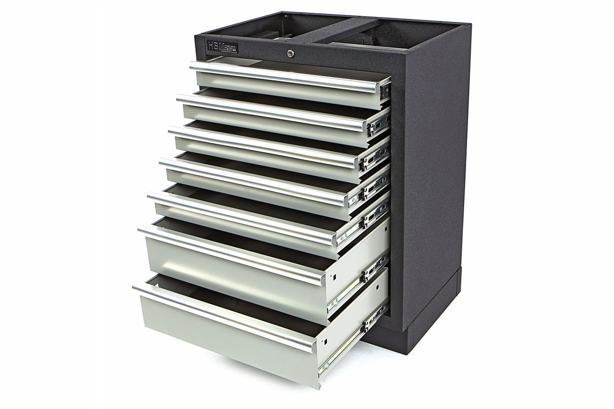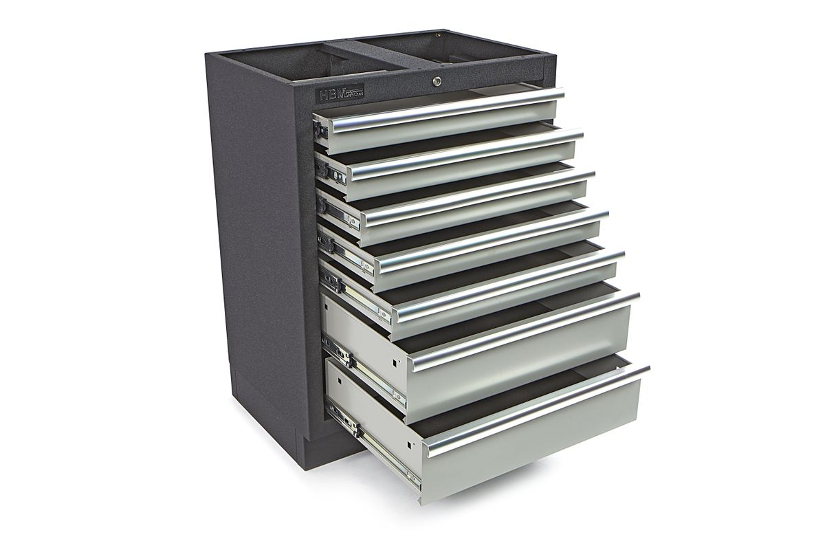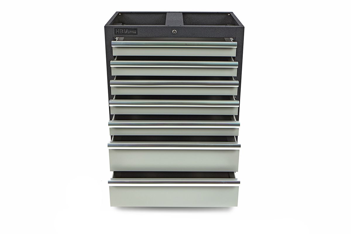 Met de HBM gereedschapskast met zeven laden richt je je werkplaats overzichtelijk en georganiseerd in. Deze kast beschikt over ruime laden die perfect zijn voor het opbergen van alle soorten gereedschap en tools, zowel voor recreatieve klussers als professionals. Naast een stevig metalen frame en strak design biedt deze kast ook een optimale veiligheid en gebruiksgemak. Door middel van blindklinkmoeren voor de staanders bevestig je gemakkelijk extra gereedschapsrekken en eventuele bovenkasten. Een overzichtelijke gereedschapskast is een must-have voor elk professioneel atelier of klusser. De HBM gereedschapskast met zeven laden maakt het inrichten van je werkplek thuis, in een professionele garage of andere werkplek gemakkelijker. Mede dankzij de compacte afmetingen en het gebruiksvriendelijke design. De laden beschikken afzonderlijk over handige brede handvatten, waardoor je deze snel en zonder problemen opent. De structuur en het gewicht van de kast zorgen ervoor dat deze stevig blijft staan, waardoor hij ook geschikt is voor zwaardere en grotere tools. De multifunctionele gereedschapskast leent zich perfect voor het opbergen van groot én klein gereedschap.