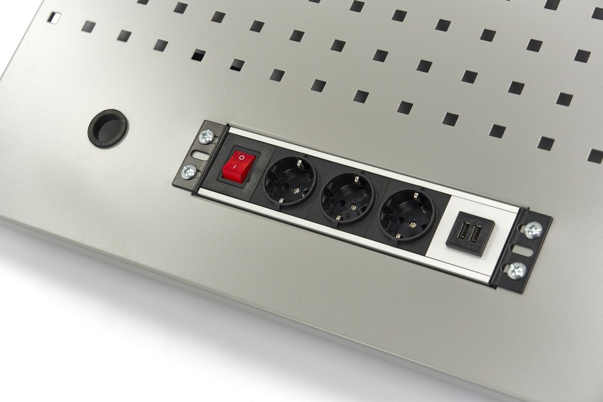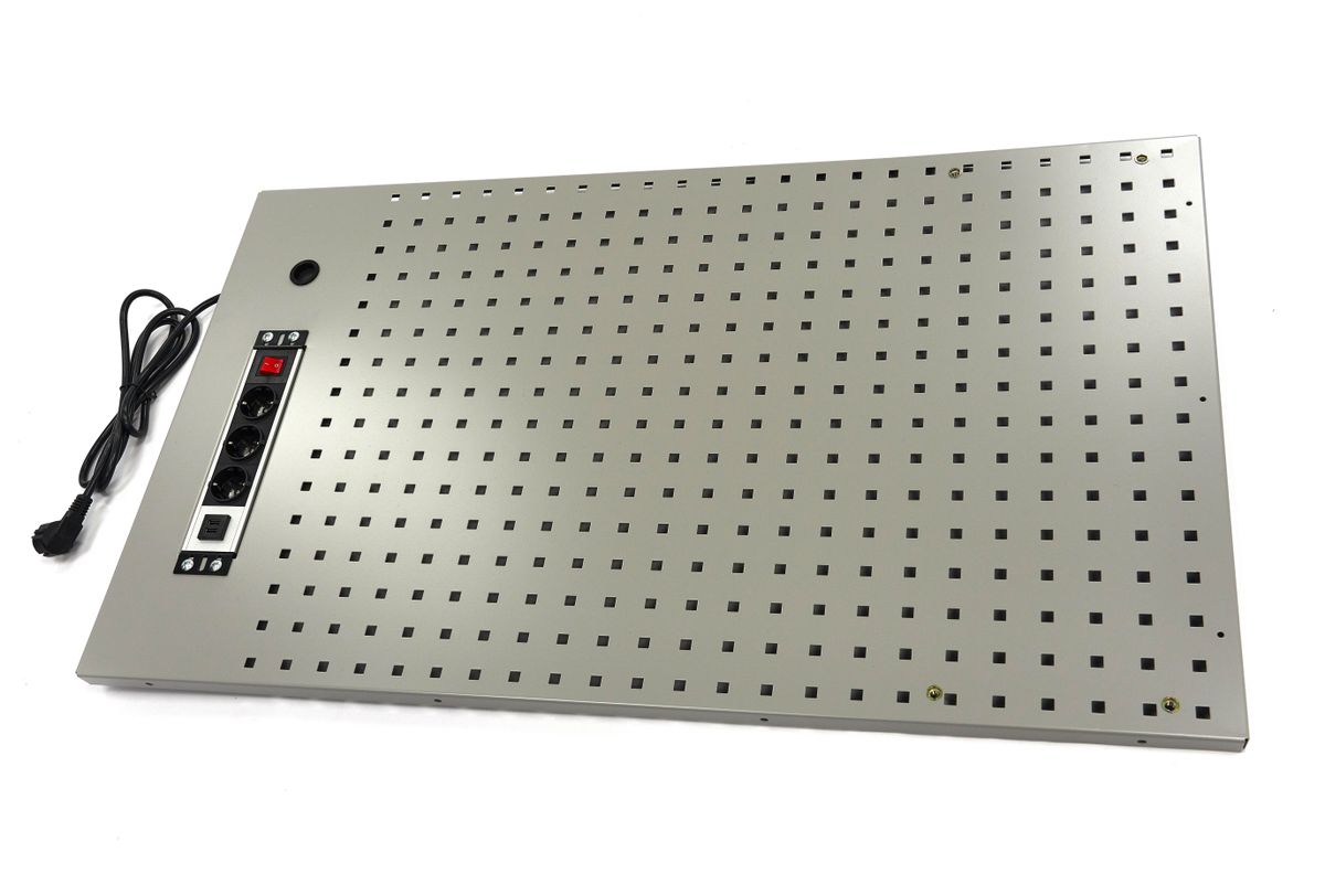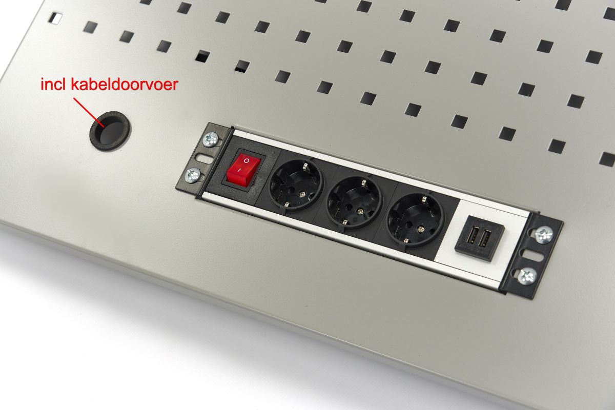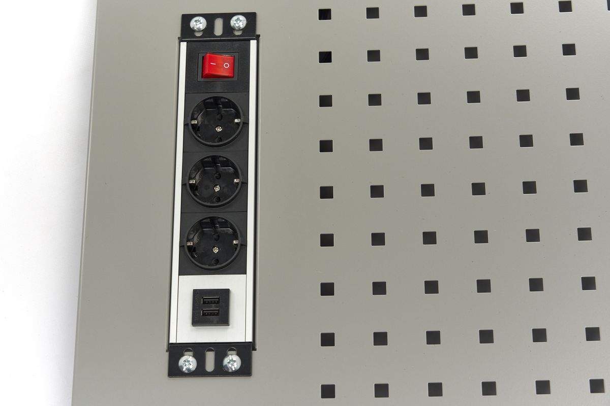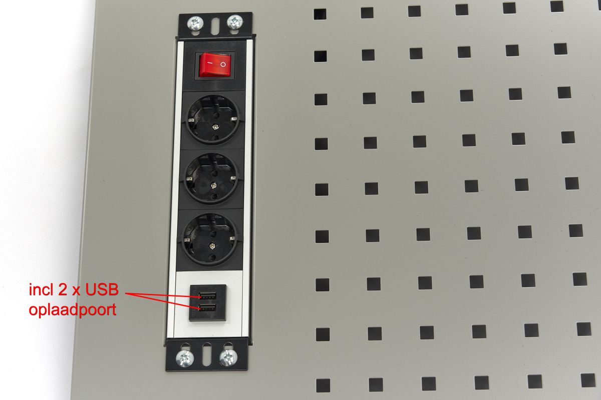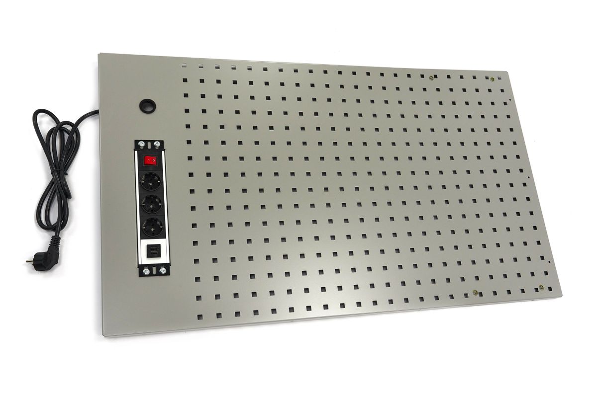 Het HBM Gereedschapsbord 105 x 61 cm Inclusief Stekkerdoos voor Werkplaatsinrichting kan gebruikt worden boven elke kast van 68 cm. breed om een complete werkplaatsinrichting te creëren. Hier zijn dan wel voor beide zijde artikel no. 9179 als koppelstuk of 9182 als eindstuk voor nodig. Is niet geschikt voor onze deluxe werkplaatsinrichting variant.