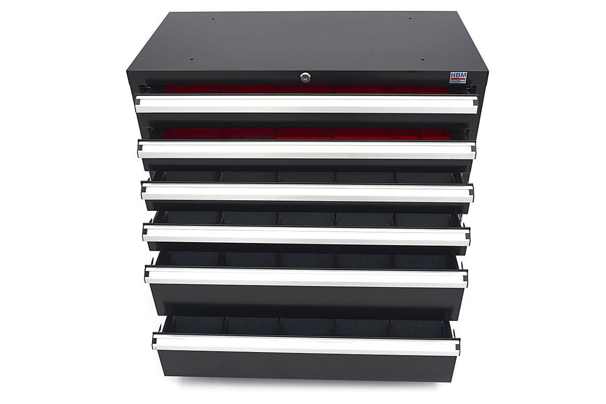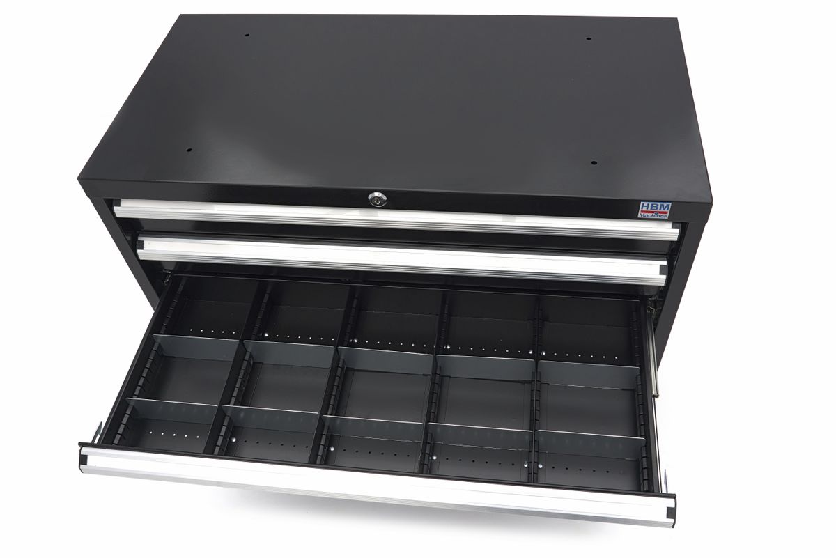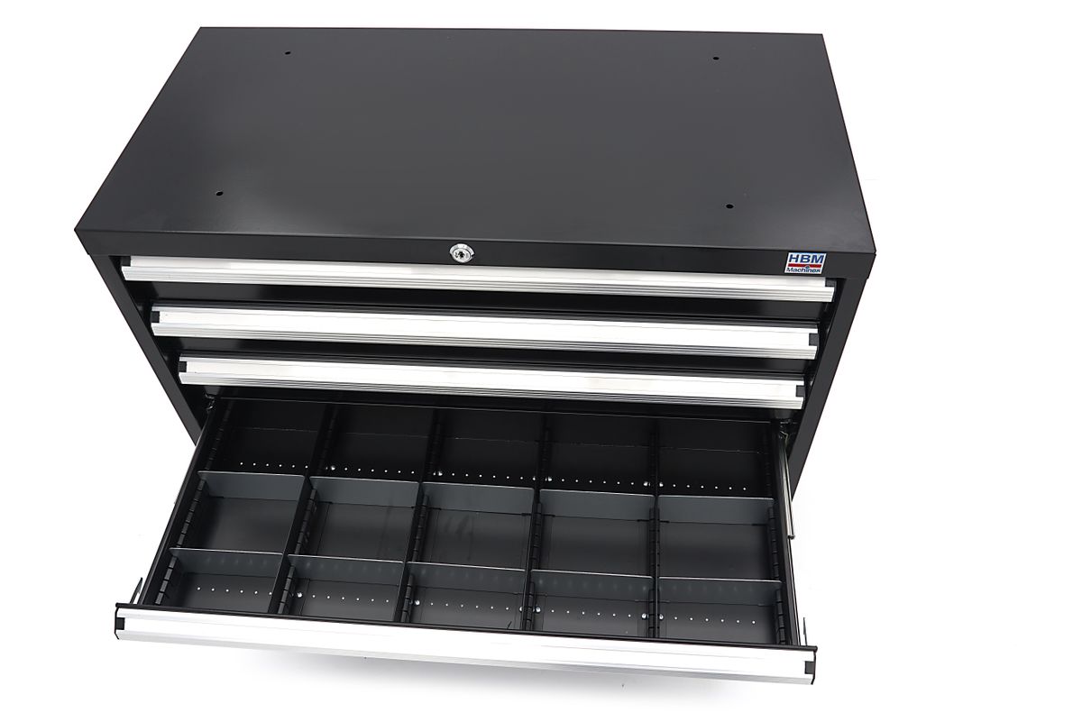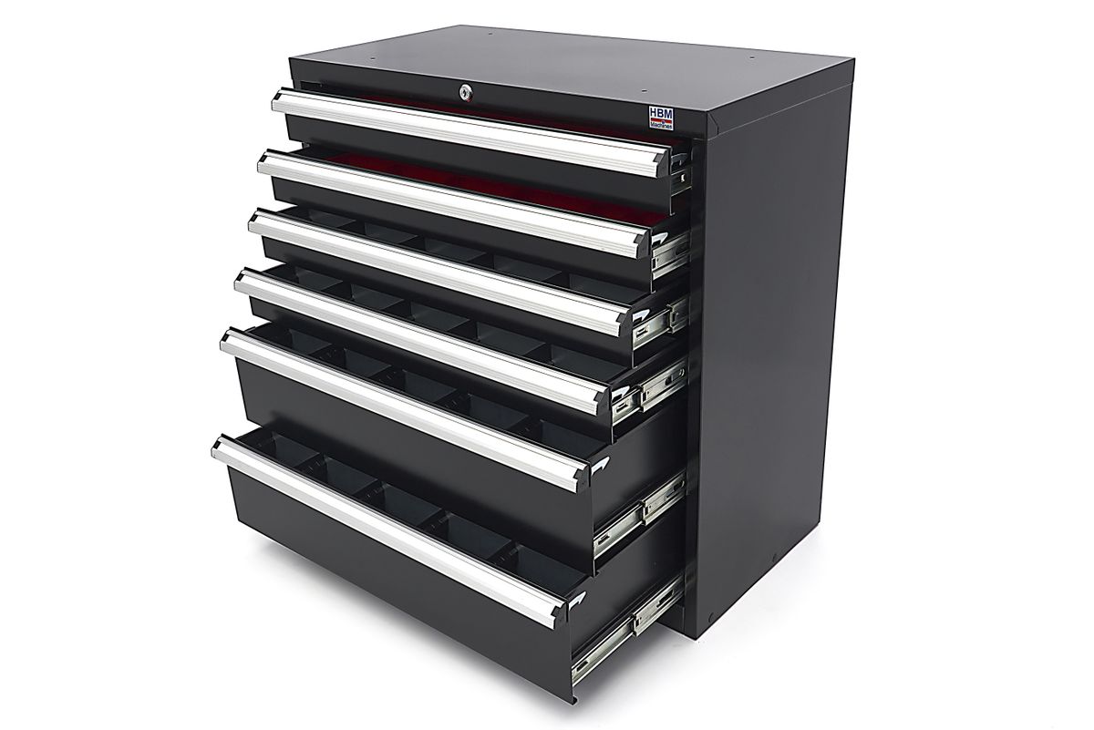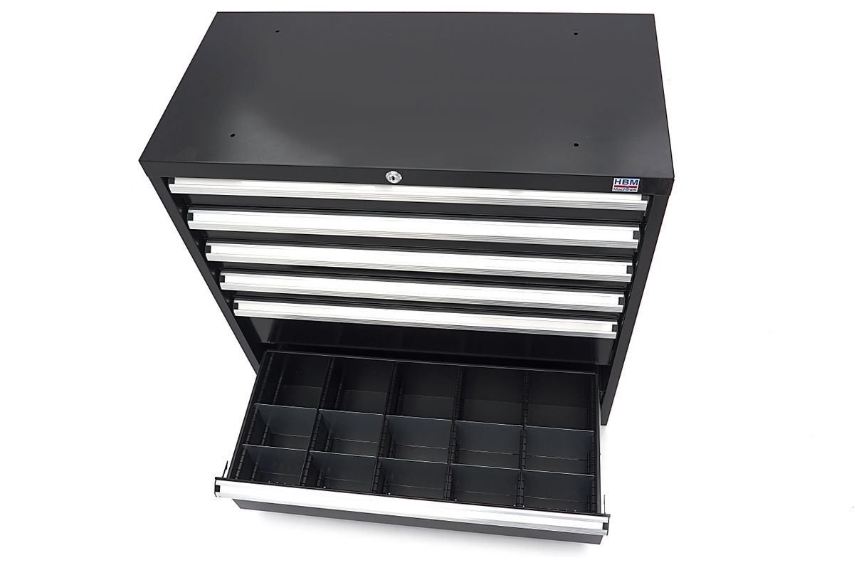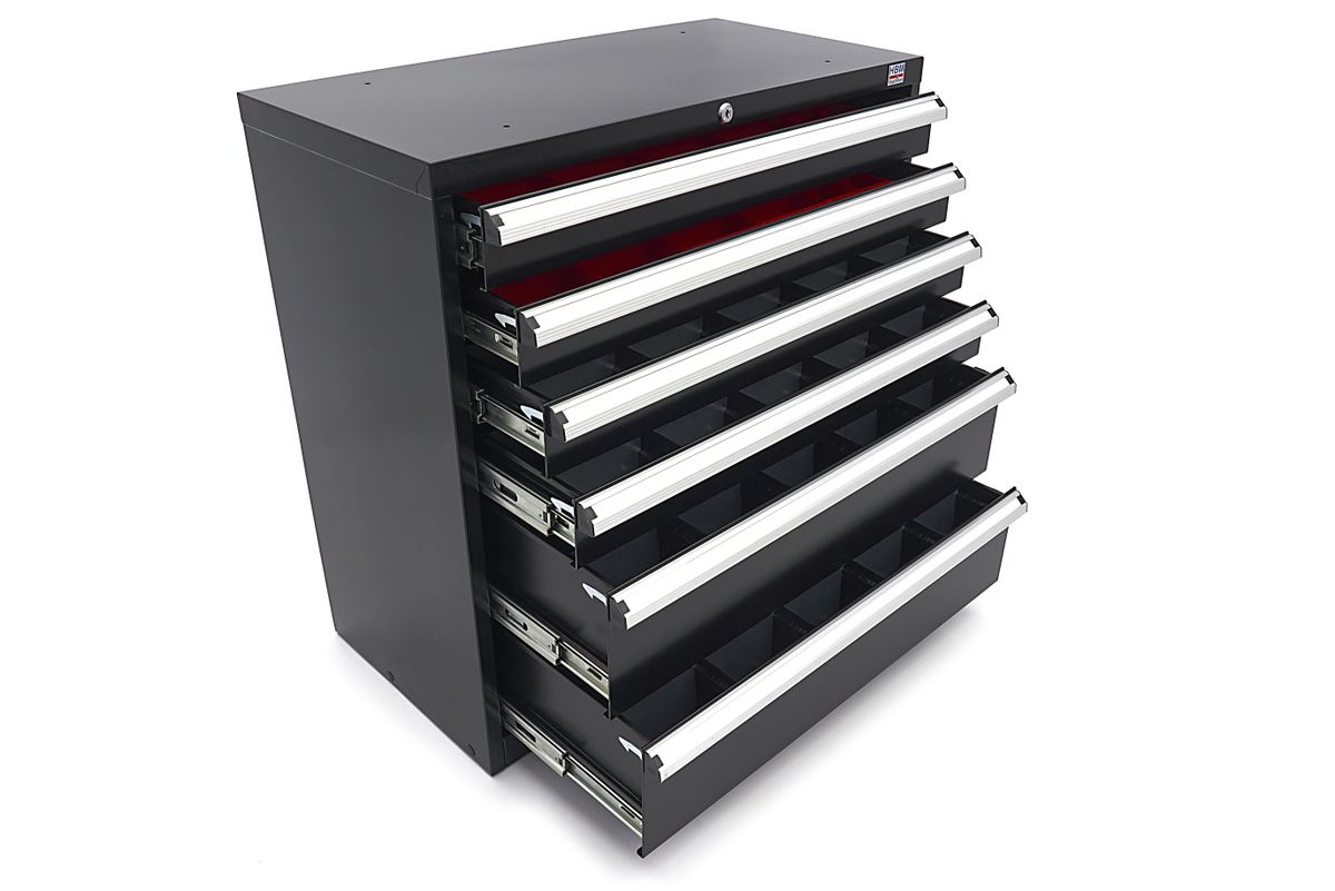 Dankzij deze gereedschapskast is het opbergen van verschillende soorten tools en materialen geen enkele uitdaging meer. De kast heeft een professionele uitstraling door zijn zwarte kleur, maar is daarbij ook erg functioneel. De verschillende lades bieden meer dan voldoende ruimte voor kleinere en iets grotere materialen, gereedschap en onderdelen. De kast is te combineren met andere gereedschapskasten of los te plaatsen.