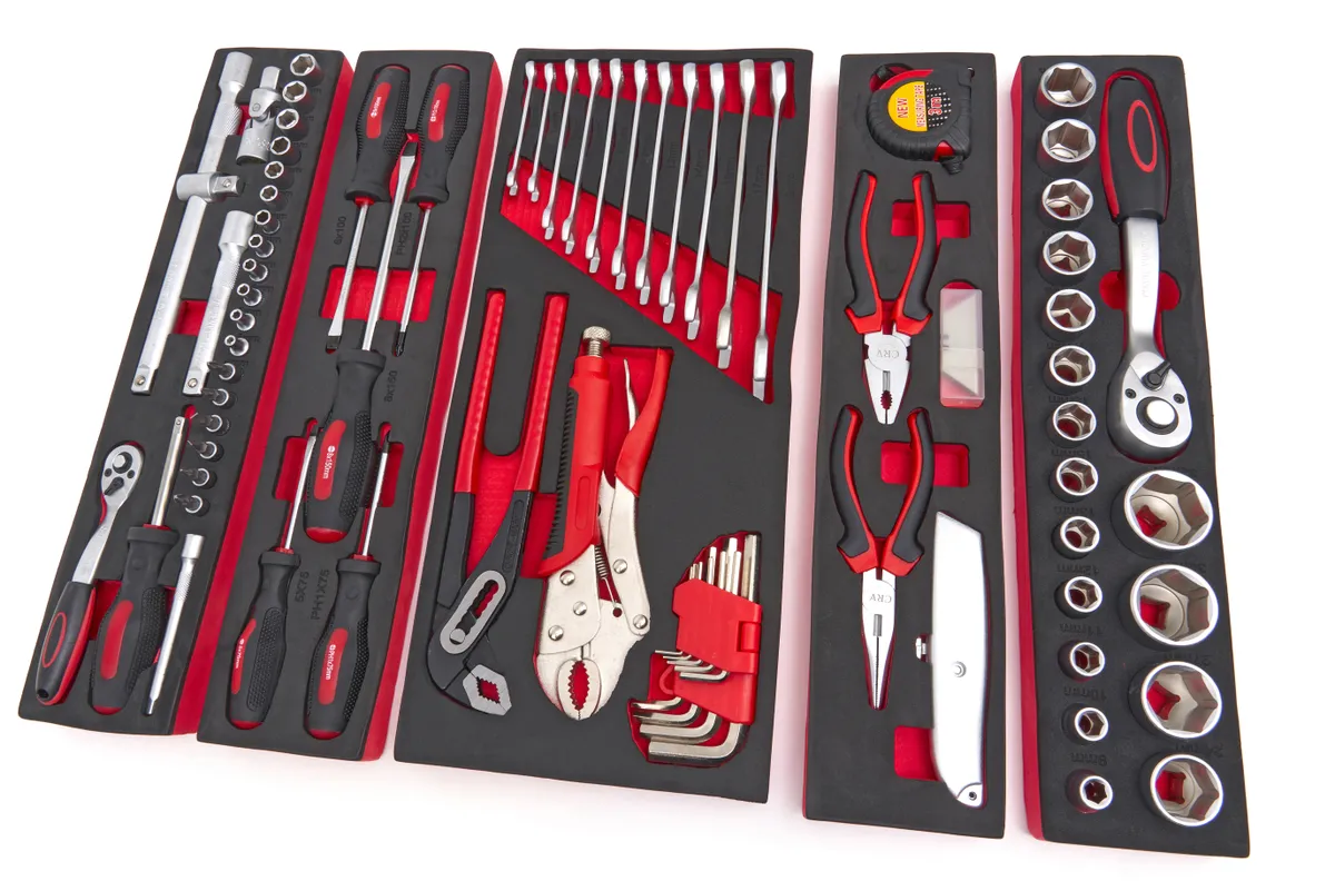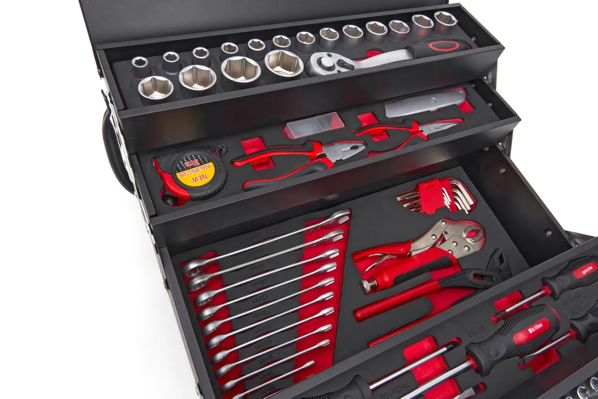 De HBM 85-delige gevulde gereedschapskist is ideaal voor iedere vakmens die graag georganiseerd werkt. Alle handgereedschappen liggen overzichtelijk opgeborgen in foam inlays die beschermen tegen stoten en verschuiven. Daardoor blijft je uitrusting netjes en gaat alles langer mee. De kist heeft vijf compartimenten waarin elk onderdeel zijn vaste plek heeft, van dopjes tot inbussleutels. Je pakt de gereedschapskist er makkelijk bij voor een snelle klus op locatie, maar hij is ook perfect als extra set voor onderweg. Zo houd je je werkplaats compleet én beschik je altijd over een handige mobiele reserve, zonder dat je iets hoeft te missen.
