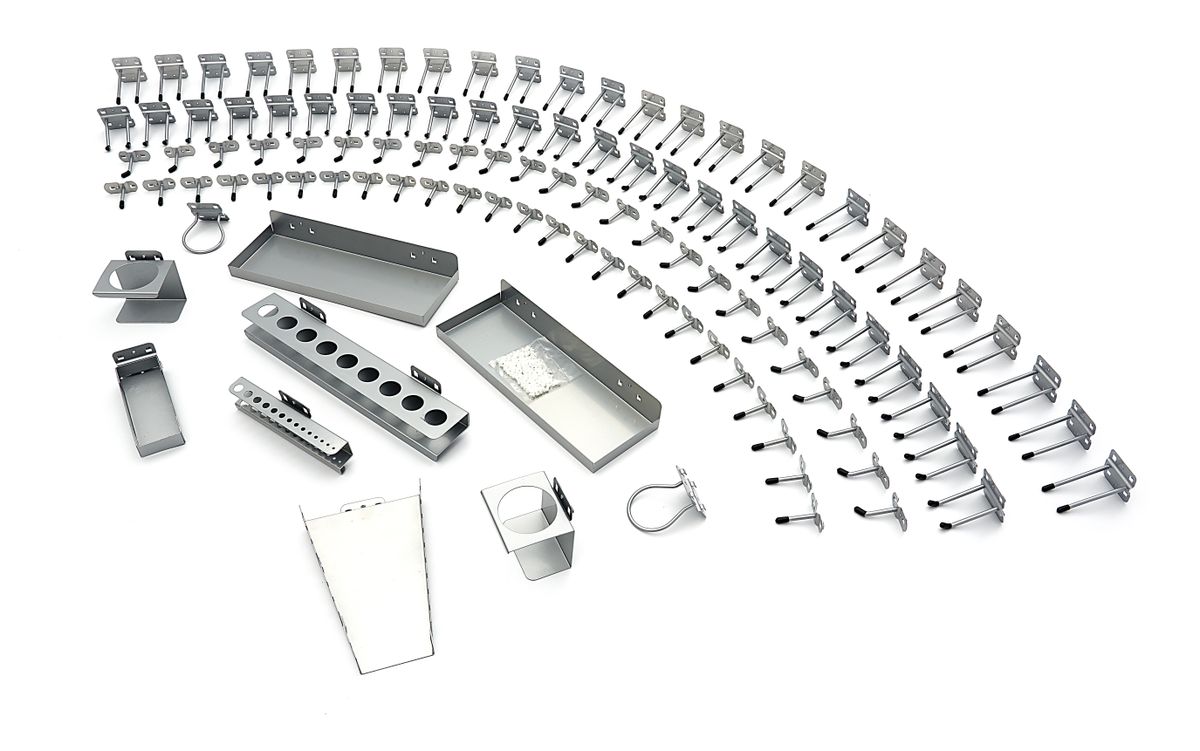Laten we eerlijk zijn: in de werkplaats kun je eigenlijk nooit genoeg opbergruimte hebben. Er zijn daarom ook altijd wel tangen, linialen of schroeven die je graag een plekje wilt geven om het werkcomfort te vergroten. Met deze 110 delige set stel je eenvoudig en snel de perfecte indeling van je gereedschapswand in de werkplaats samen.