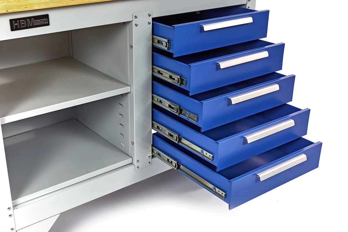 Een stevige, multifunctionele werkbank is onmisbaar voor elke vakman en enthousiaste hobbyist. Met deze kogelgelagerde werkbank van HBM beschik je in één keer over alle nodige ruimte voor het verrichten van kleine werkjes. Ook het bijhouden van tools en gereedschap is mogelijk dankzij de opbergruimtes. Het design van de bank is eenvoudig, maar voldoet aan alle verwachtingen op het vlak duurzaamheid en kwaliteit.