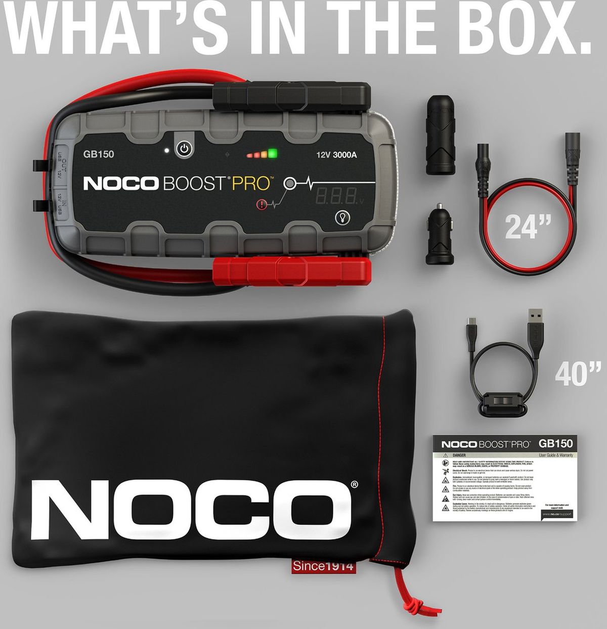 De Noco lithium jump starter Boost Pro GB150 3000A is een krachtige metgezel voor al je avonturen op de weg. Deze compacte en toch krachtige lithium-ion-accu levert 3.000 ampère, waardoor je voertuig in enkele seconden weer tot leven komt, zelfs als de accu leeg is. Met gepatenteerde veiligheidstechnologie biedt deze jumpstarter vonkvrije verbindingen en bescherming tegen omgekeerde polariteit, waardoor het veilig en gemakkelijk te gebruiken is voor iedereen. Of je nu een benzine- of dieselmotor tot 10 liter hebt, deze jumpstarter is ontworpen om te presteren. Maar de veelzijdigheid stopt hier niet. De GB150 fungeert ook als een draagbare voeding voor het opladen van USB-apparaten zoals smartphones en tablets. Dankzij de 12V-uitgang kunnen ook apparaten zoals bandenpompen en omvormers van stroom worden voorzien, waardoor je onderweg altijd de nodige energie hebt. De toegevoegde bonus van een 500 lumen led-zaklamp met verschillende modi, waaronder SOS, maakt deze jumpstarter een essentieel hulpmiddel, zelfs in noodsituaties. Compact, krachtig en foutbestendig, de GB150 biedt tot 80 startpogingen op één enkele lading. Laat je niet misleiden door zijn bescheiden formaat; deze lithium jump starter is ontworpen om groots te presteren. En met de meegeleverde micro-USB-kabel en compatibiliteit met de XGC4-snellader, ben je altijd snel weer op pad. Met afmetingen van 69 mm x 185 mm x 315 mm en een gewicht van slechts 3.6 kg is dit de ultieme draagbare krachtbron voor onderweg