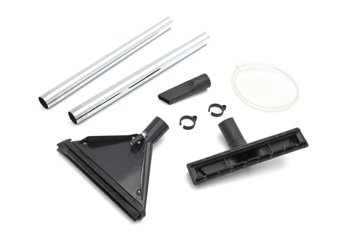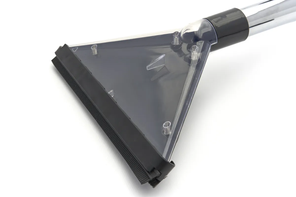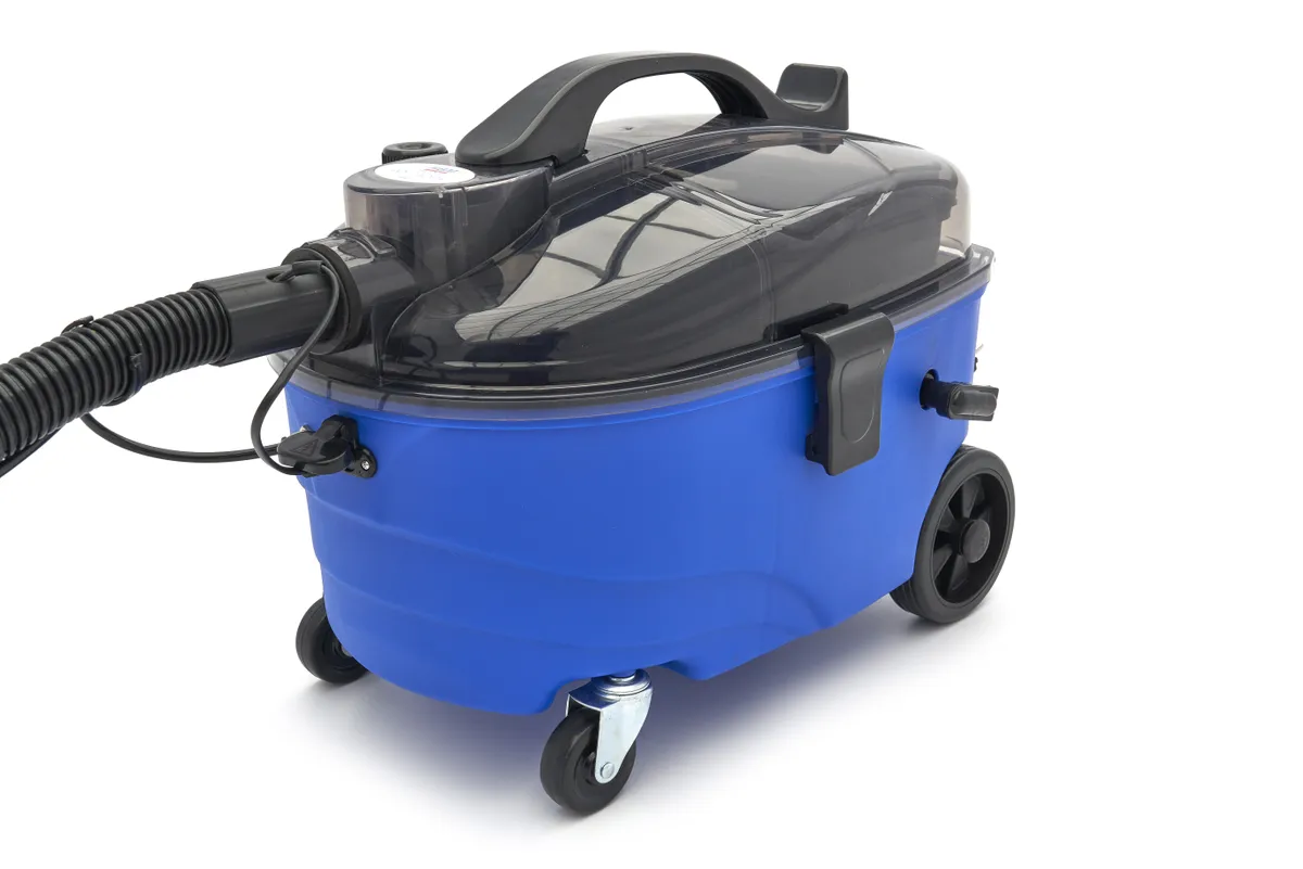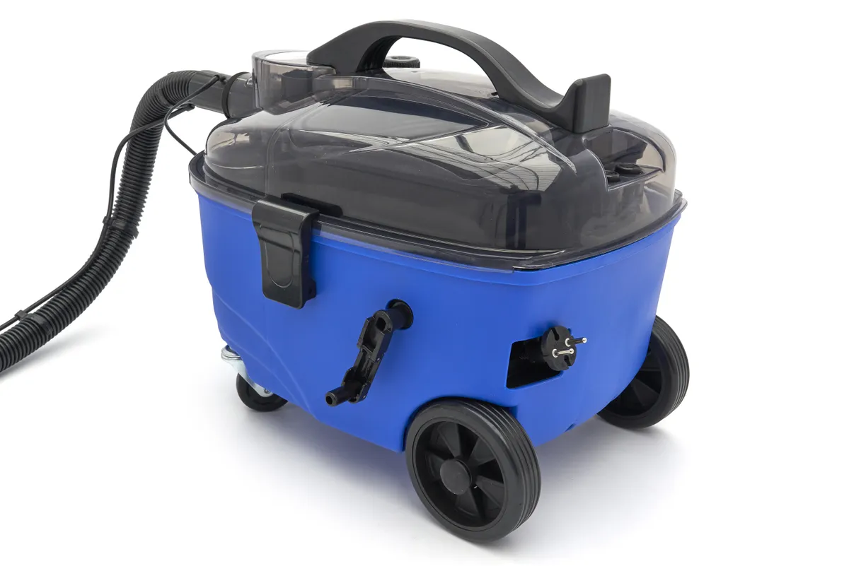 Met deze tapijtreiniger / bekledingsreiniger kan men een oppervlak spoelen. Dit spoelen bestaat uit het bevochtigen van een oppervlak (meestal textiel) gevolgd doorhet direct daarna weer opzuigen van het vocht. Deze bekleding reiniger bevat intern een vuilwater- en een schoonwater compartiment. Aan het schoonwater compartiment kan naar believen een reinigingsmiddel of een shampoo worden toegevoegd. De steel van de machine is uitgevoerd met een handvat met een trekker. Hiermee wordt een elektrische pomp in werking gezet die het water onder hoge druk op de bekledingspuit. De nozzle hiervoor bevindt zich onder het driehoekige zuigmondstuk. De bovenzijde van dit zuigmondstuk is gemaakt van transparant kunststof. Hierdoor kan men goed zien wanneer men vocht aan het oppervlak onttrekt. Tevens is hierdoor goed te zien hoe vuil dit vocht is. Het opgezogen vocht komt in het vuilwater compartiment terecht, dat gemakkelijk als een emmer uit de machine gehaald kan worden om het te ledigen. Deze tapijtreiniger wordt compleet geleverd met een zuigmond die van de machine een “normale” waterzuiger maakt plus een extra smal mondstuk voor de moeilijk te bereiken plekken. Het snoer van deze bekledingreiniger wordt op een inwendige haspel in de machine opgerold. Zo kan de machine compact worden opgeslagen.
